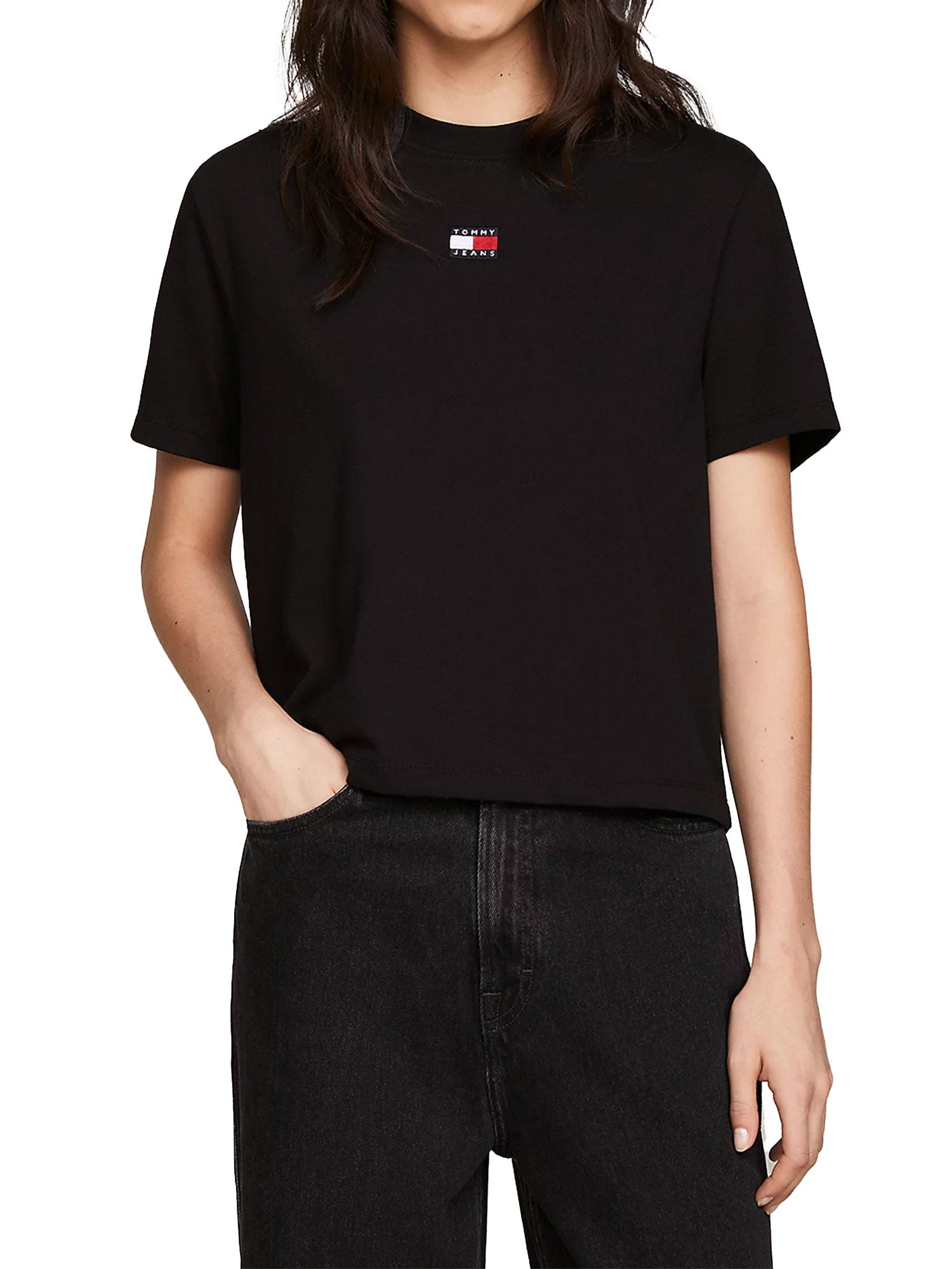 T-shirt classic fit boxy badge nero