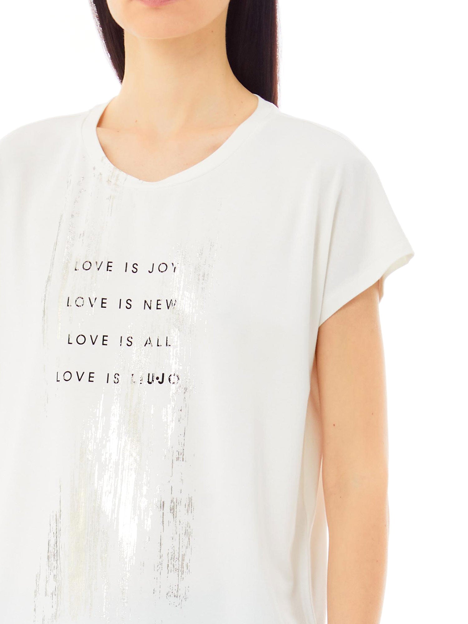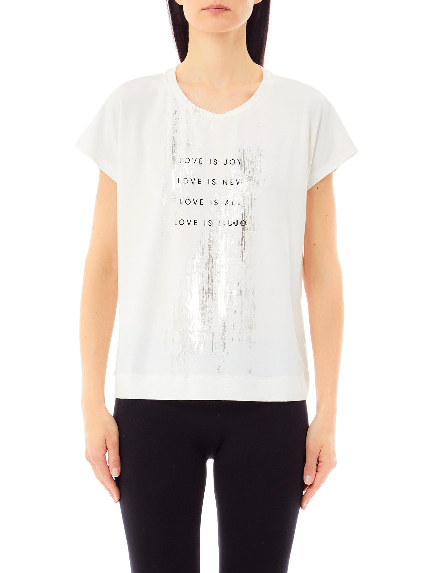 T-shirt Liu Jo, modello in jersey di cotone stretch, con stampa scritta stile spalmato. Dona un tocco cool ai tuoi look di tutti i giorni.