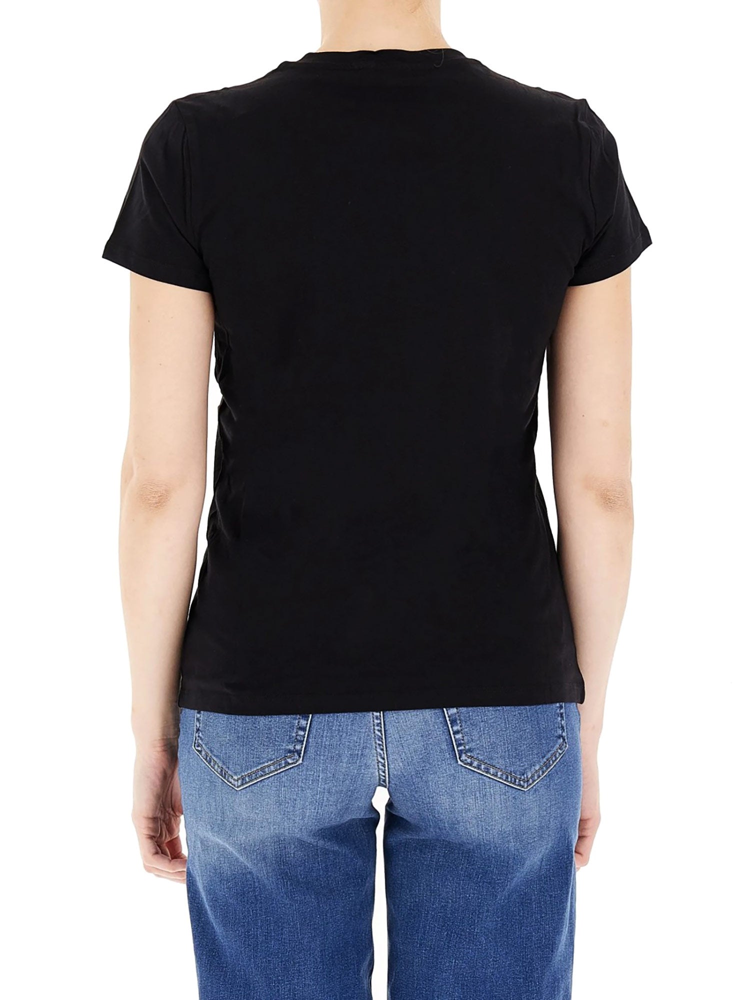T-shirt con stampa floreale con strass nero