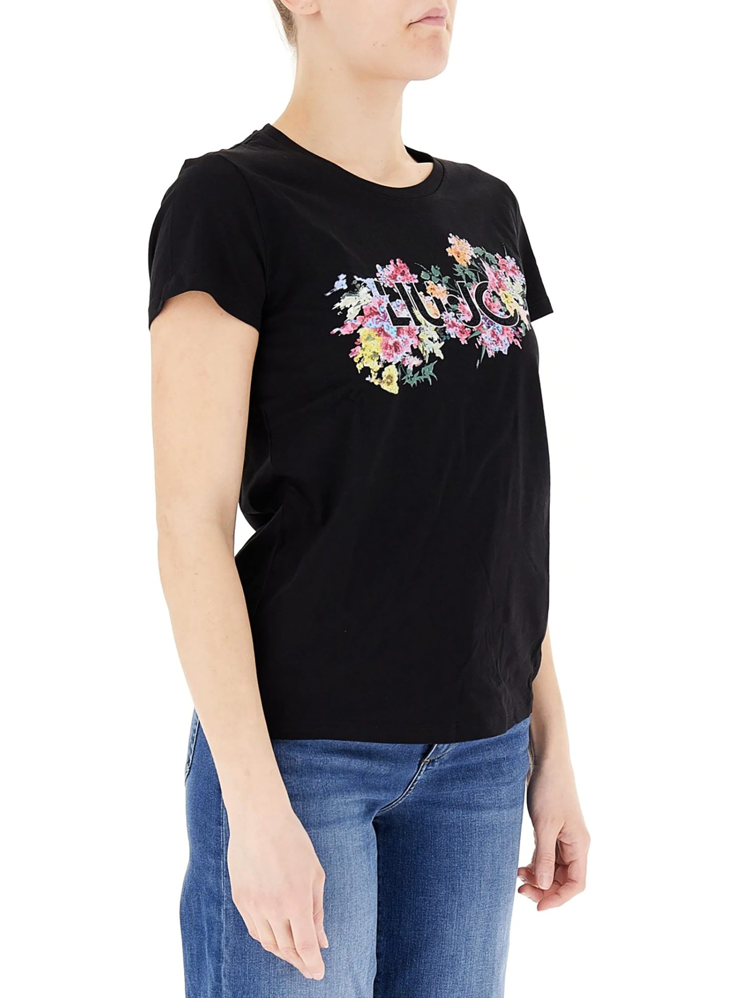 T-shirt Liu Jo, modello in jersey di cotone, con stampa floreale con strass sul petto. Ideale per dare un tocco glam ai tuoi look.