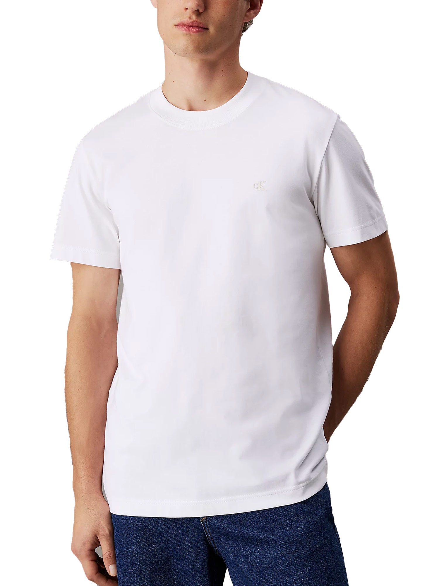 T-shirt manica corta Calvin Klein Jeans per uomo. Un capo must-have che si abbina ad ogni occasione, da indossare su un jeans, pantaloni chino o shorts, reso iconico e senza tempo grazie al logo mini ricamato sul petto.
