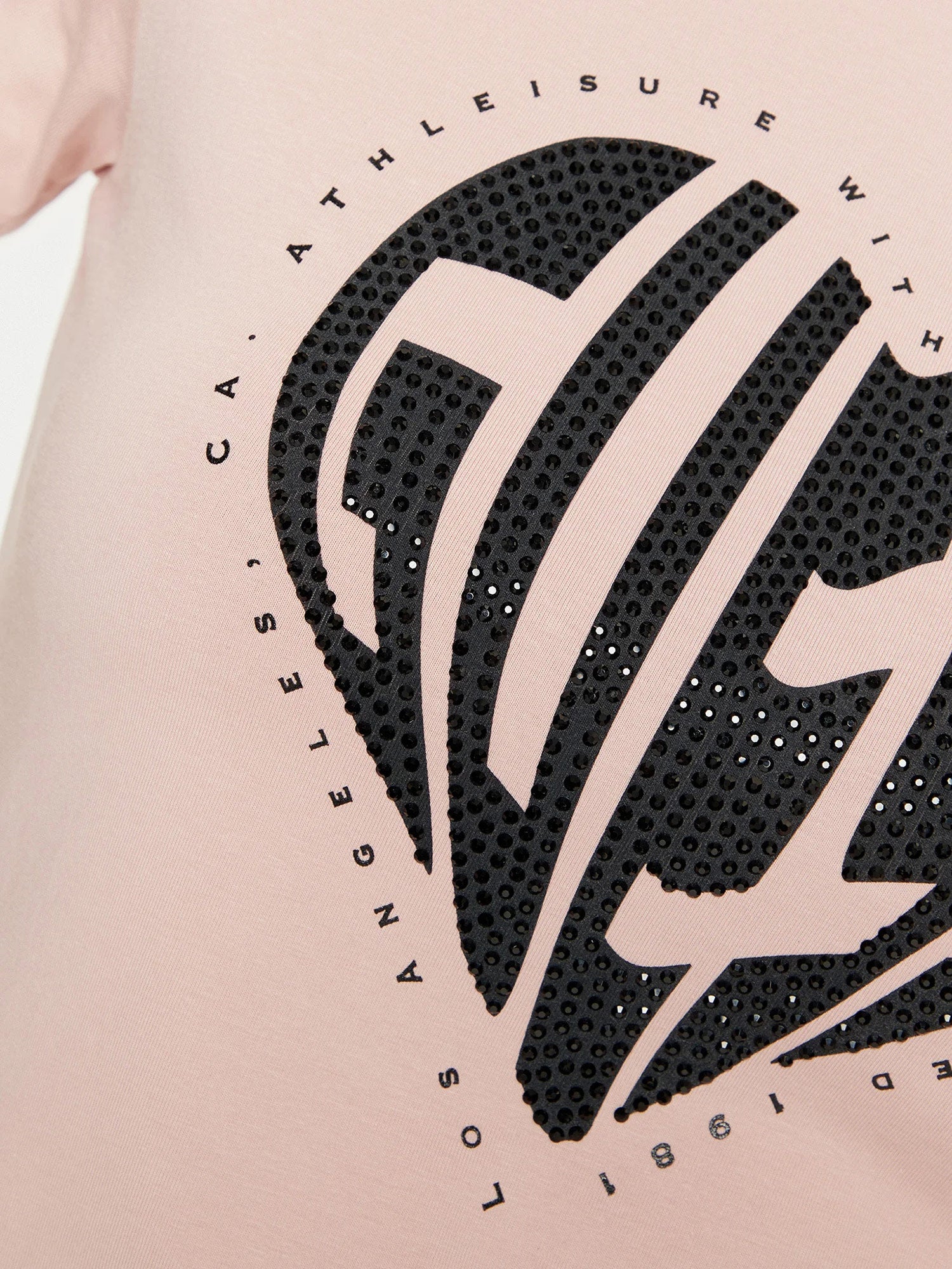 T-shirt Guess a maniche corte, must-have di stagione che unisce comfort e stile con un tocco glam. Realizzata in morbido jersey di cotone elasticizzato, segue perfettamente la silhouette senza costringere. Il design è valorizzato dal logo frontale con applicazione di zirconi, che dona luce al look e rende il capo ideale sia per il daywear che per outfit più femminili e grintosi.