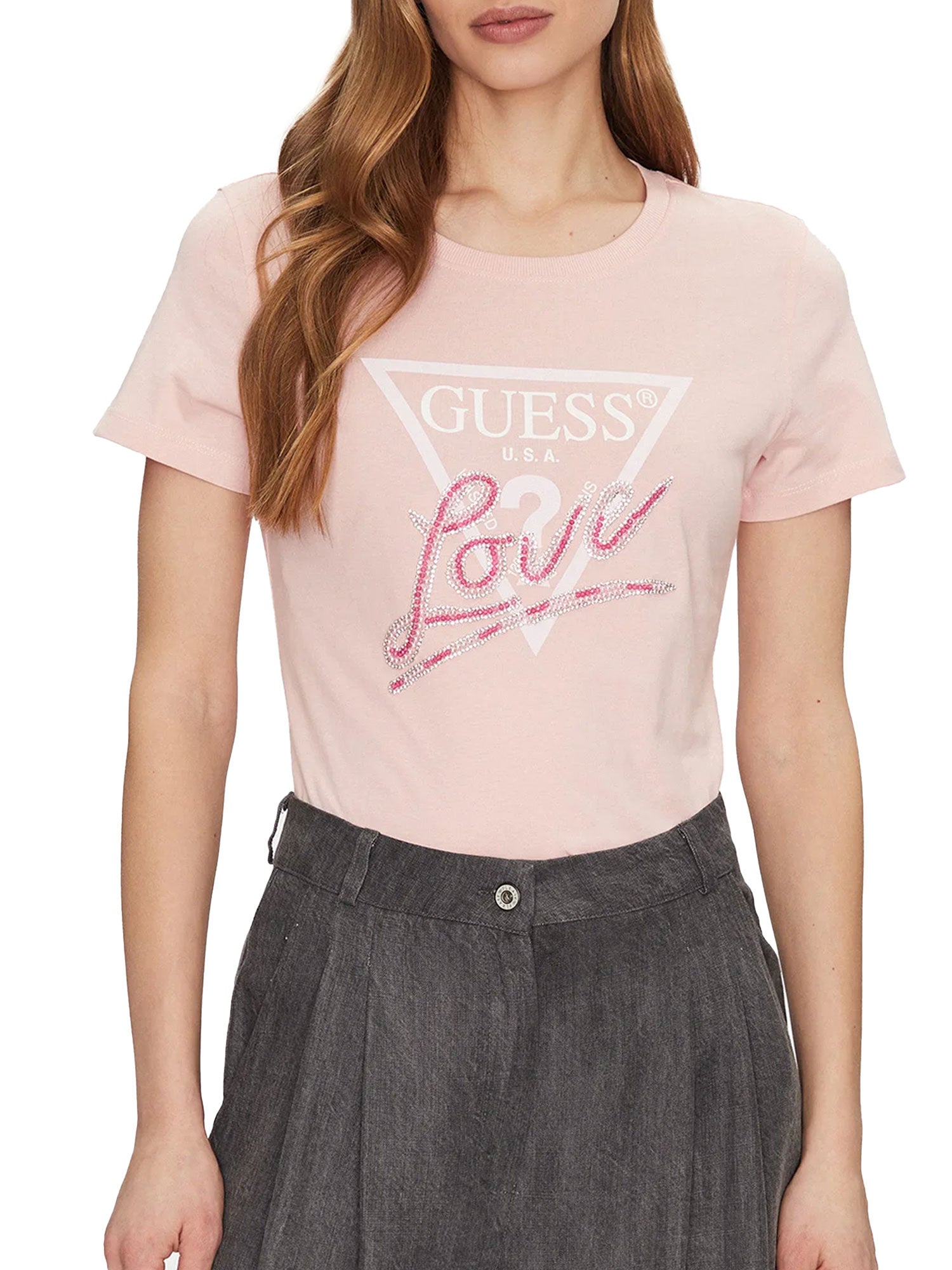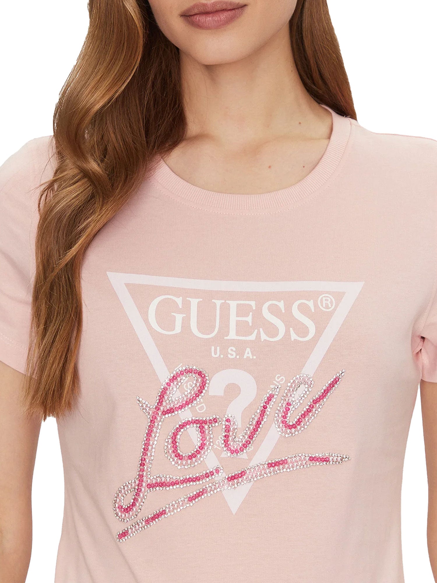 - Logo “GUESS U.S.A.” con scritta “Love” in strass e perline