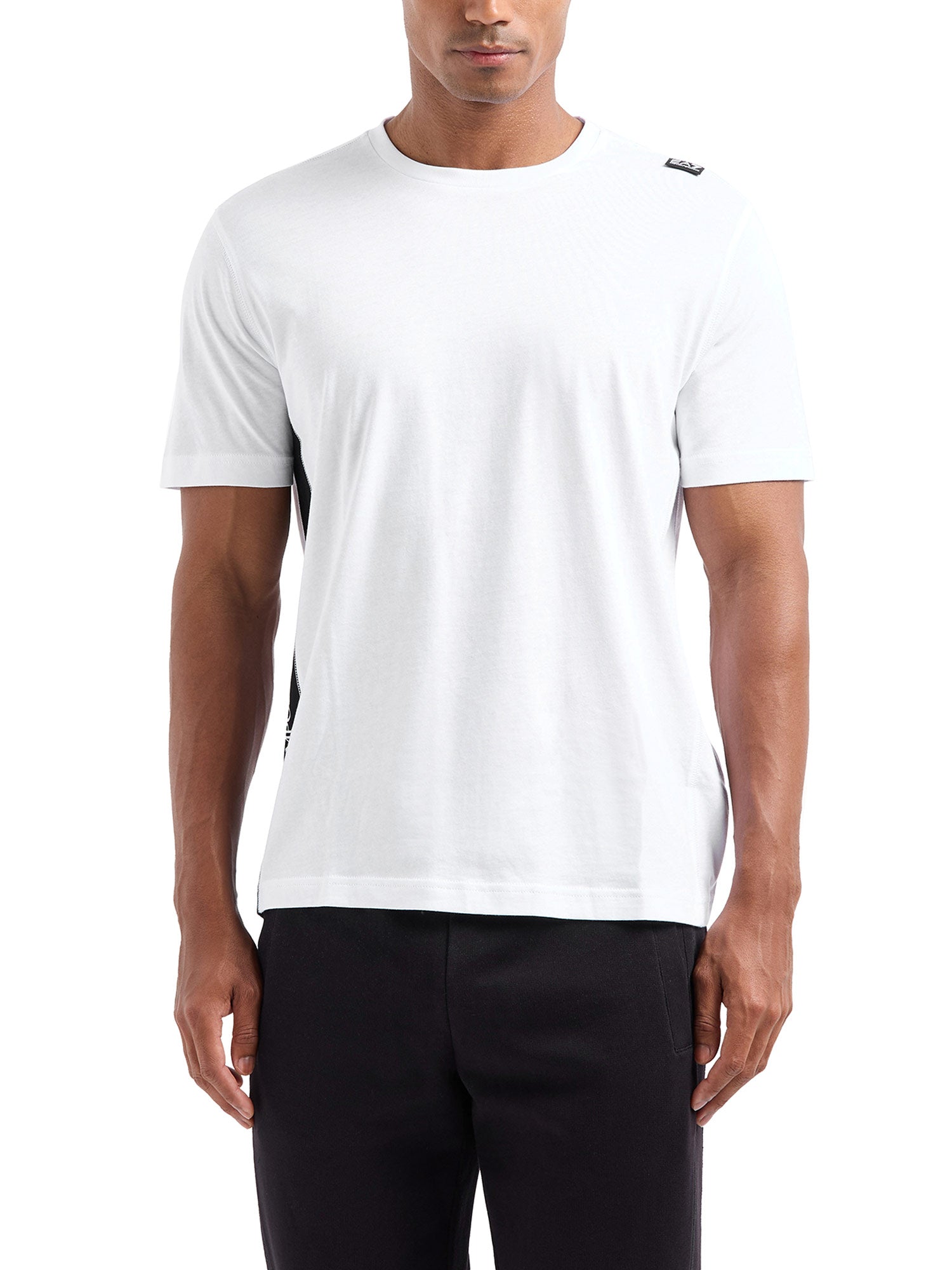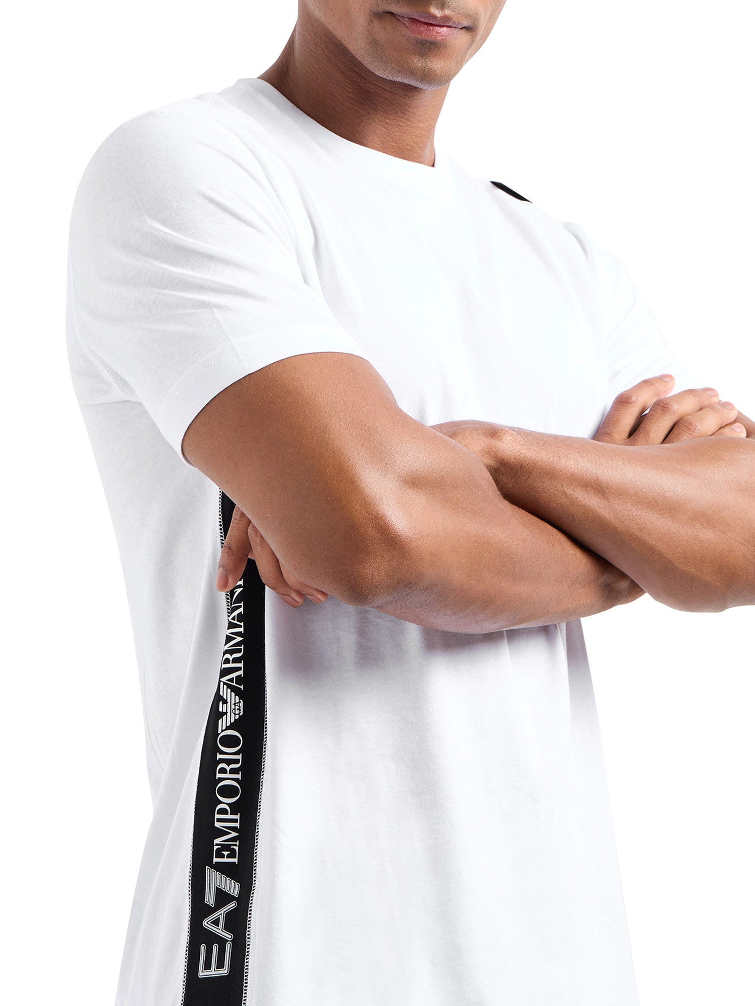 T-shirt a maniche corte di EA7 Emporio Armani si distingue per il suo design essenziale e contemporaneo. Realizzata in colore bianco, è caratterizzata da un dettaglio iconico: una banda laterale nera con il logo EA7 Emporio Armani stampato in bianco, che aggiunge un tocco di stile e riconoscibilità al capo. La t-shirt ha una vestibilità regolare, ideale per un look casual ma raffinato, perfetto per chi cerca un capo versatile e alla moda.