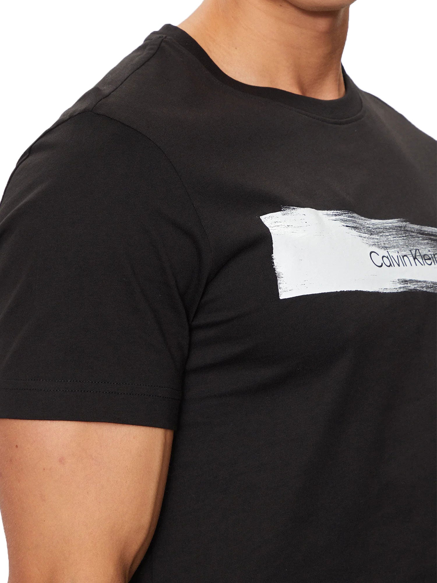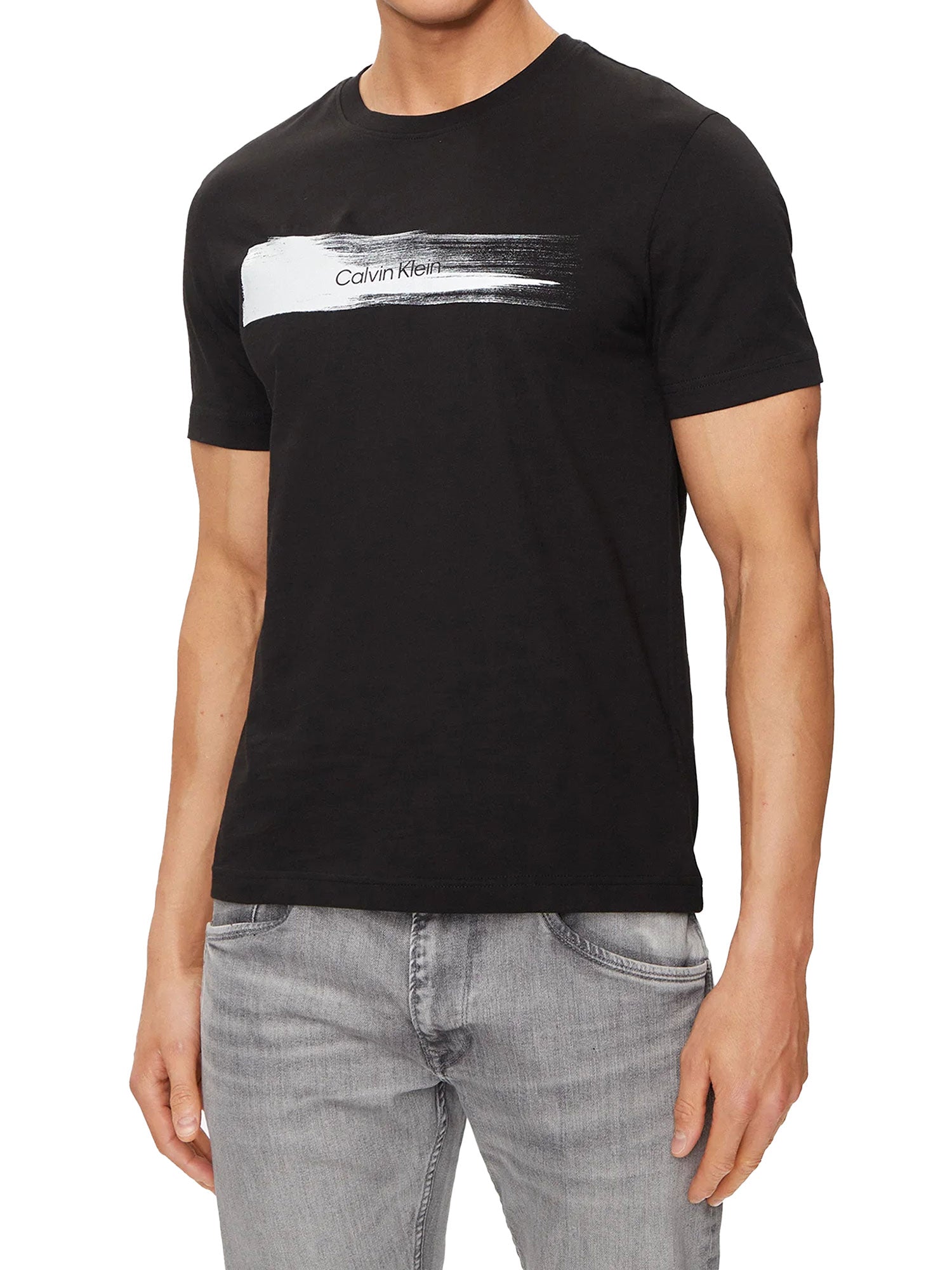 T-shirt manica corta stampa brush con logo a contrasto nero