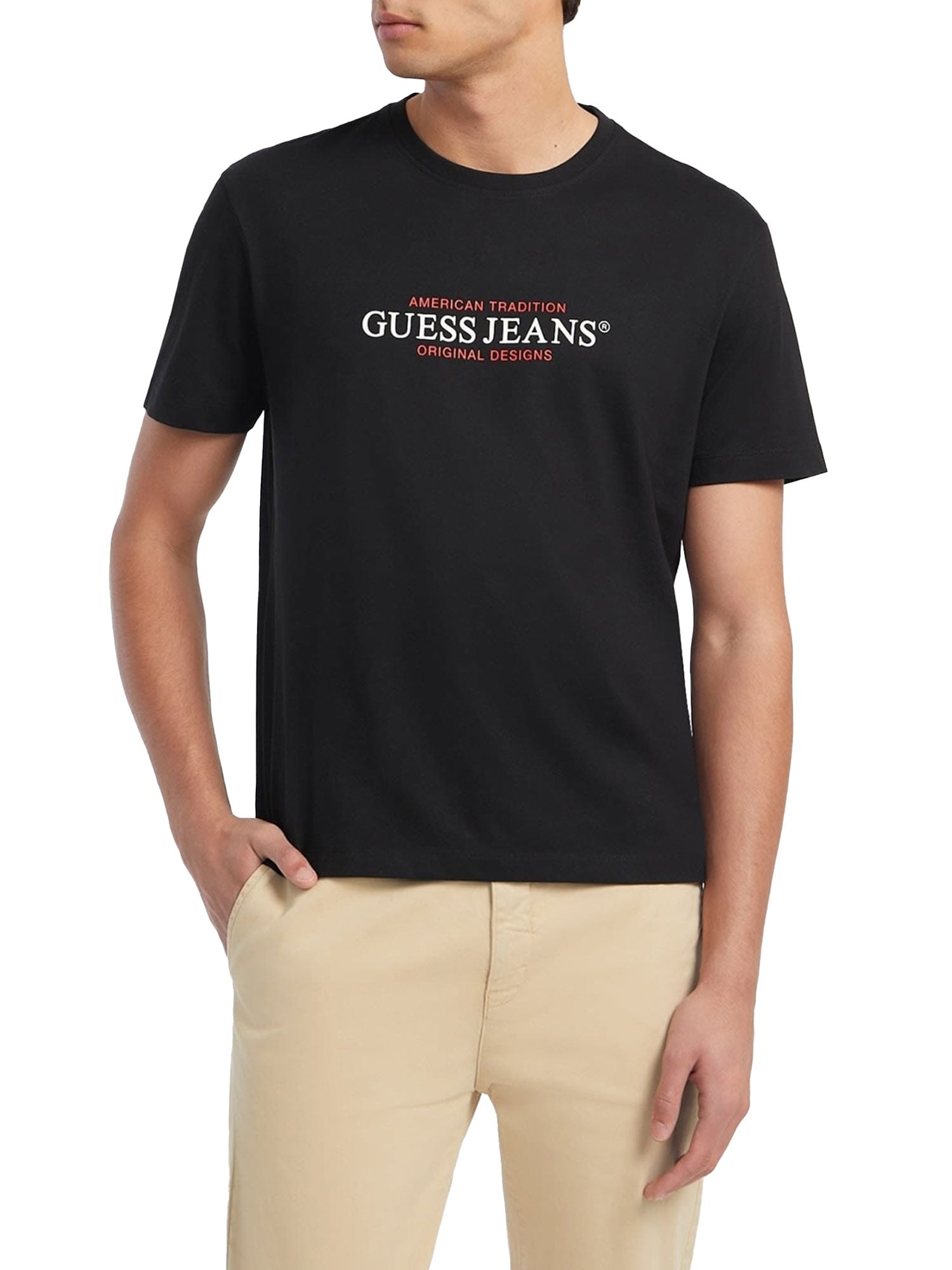 T-shirt oversize, Guess Jeans, caratterizzata dalla scritta American Tradition. Una t-shirt facile da indossare per la vita di tutti i giorni.