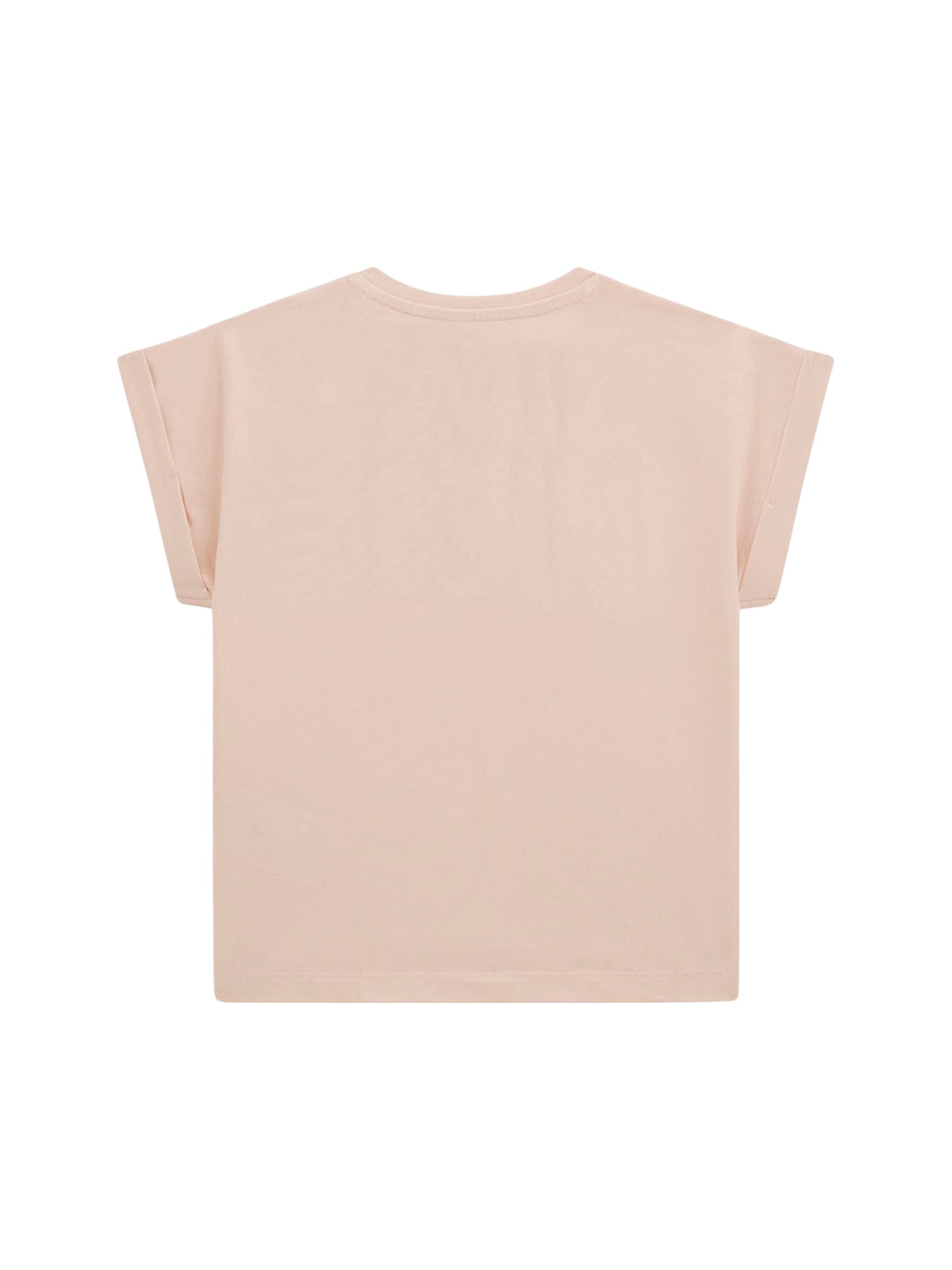 T-shirt maniche corte con logo trasparente e paillettes rosa