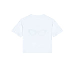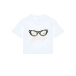 T-shirt maniche corte con stampa e applicazione strass bianco