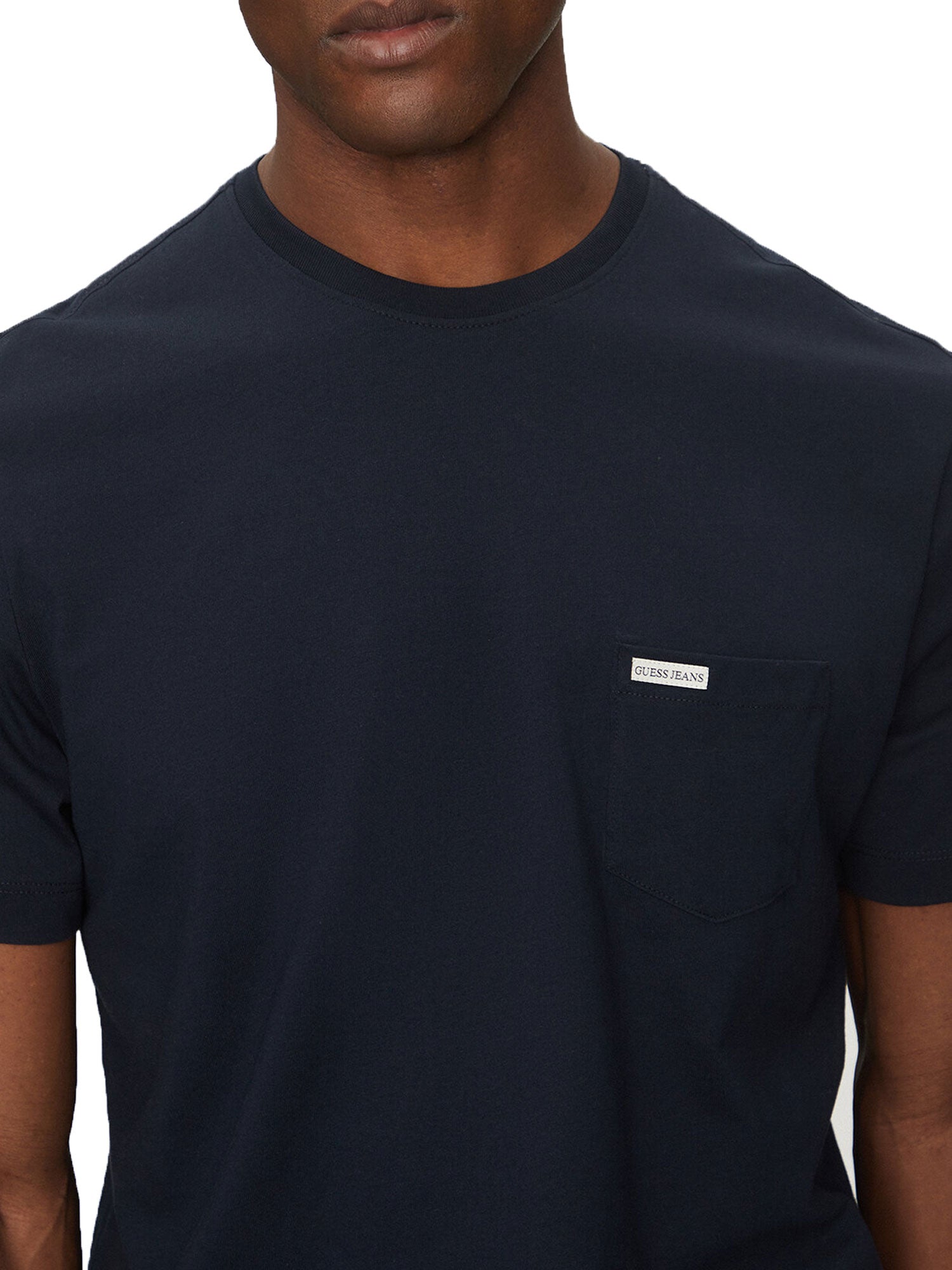 T-shirt Guess Jeans, dal design semplice e rilassato, con una vestibilità morbida. È caratterizzata da un taschino applicato sul lato sinistro del petto, con un piccolo logo GUESS JEANS che aggiunge un tocco distintivo.