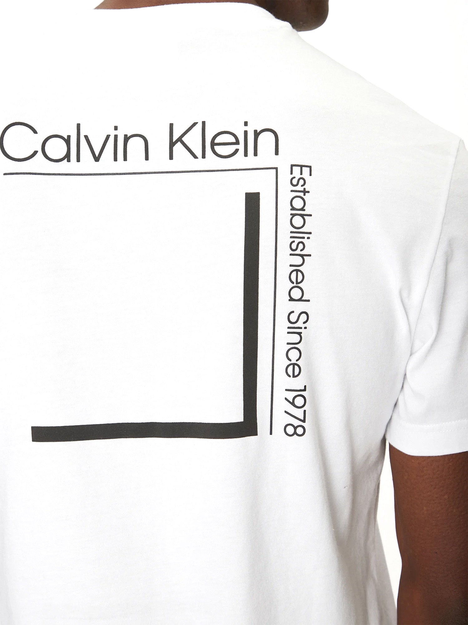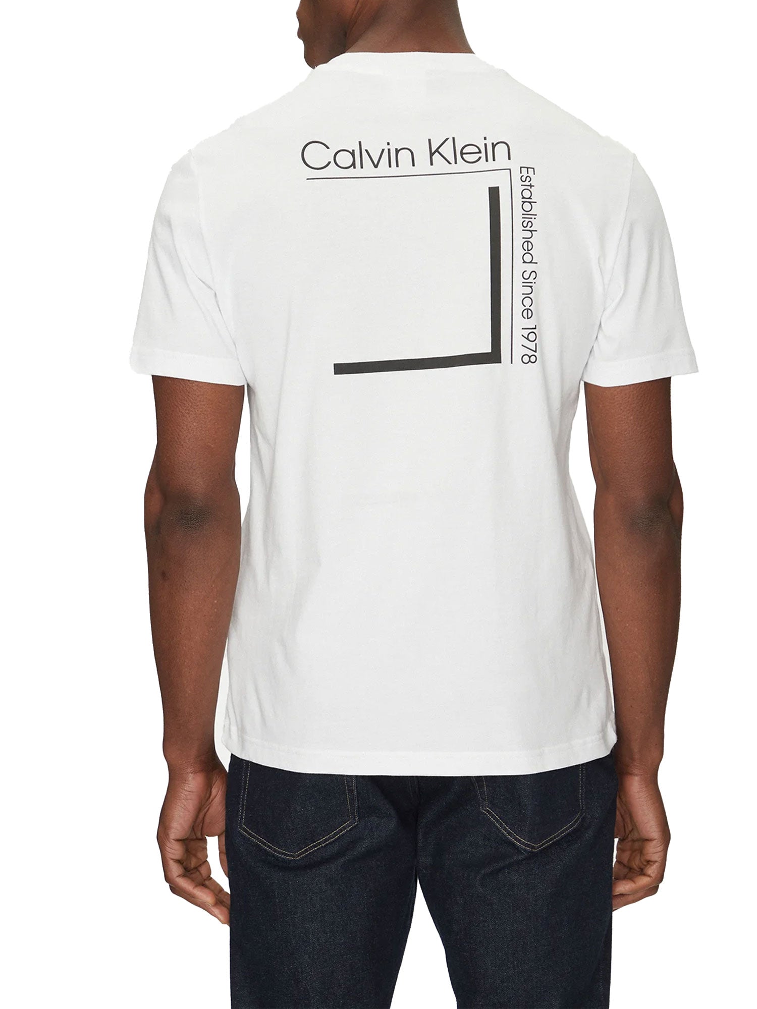 - Design minimalista logo Calvin Klein discreto sul petto e stampa grafica sul retro