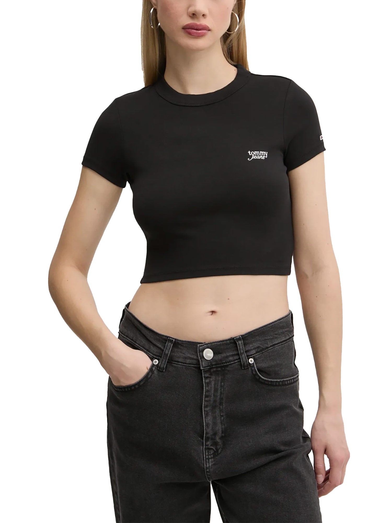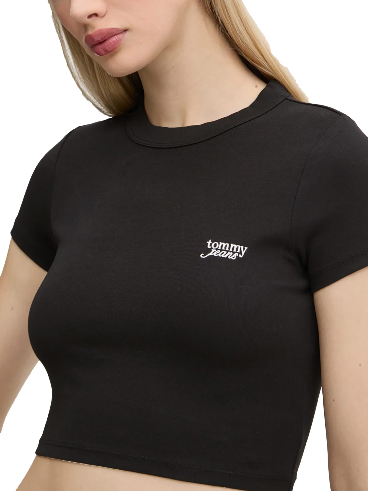 Questa t-shirt crop Tommy Jeans è un capo essenziale per un look urban e di tendenza, ideale per chi ama uno stile dinamico e moderno. Perfetta per un look casual durante un'uscita con gli amici o un pomeriggio in città. Si abbina a jeans a vita alta o joggers per un outfit sporty-chic.