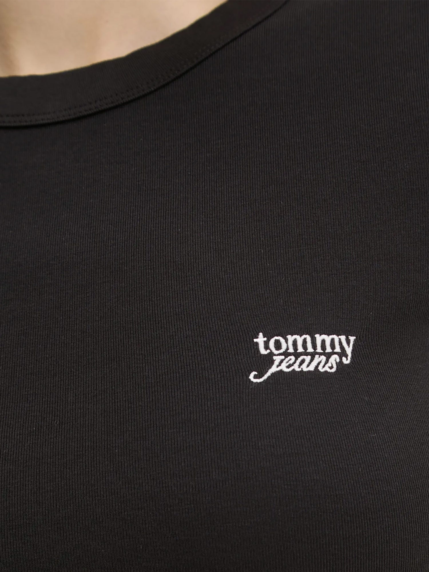 - Dettaglio logo Tommy Jeans ricamato sul petto e sulla manica