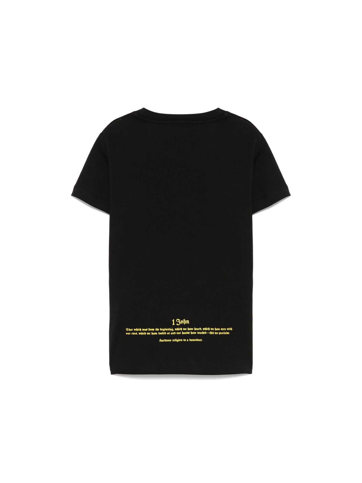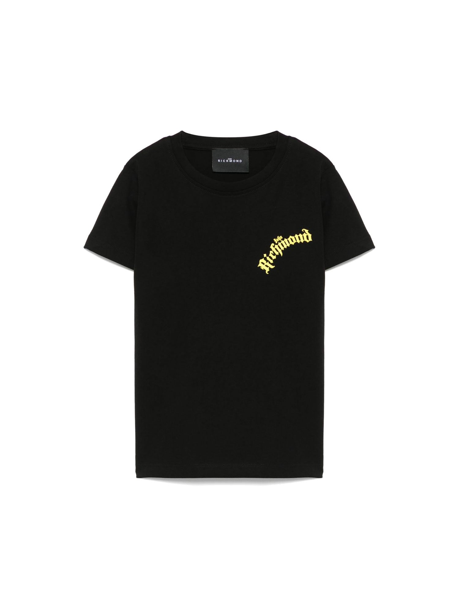 Perfetta per i piccoli dallo stile deciso, questa t-shirt firmata John Richmond unisce semplicità e carattere. Il dettaglio grafico giallo con logo sul petto e citazione sul retro la rende un capo urban dallo spirito contemporaneo, ideale per look casual ma curati.
