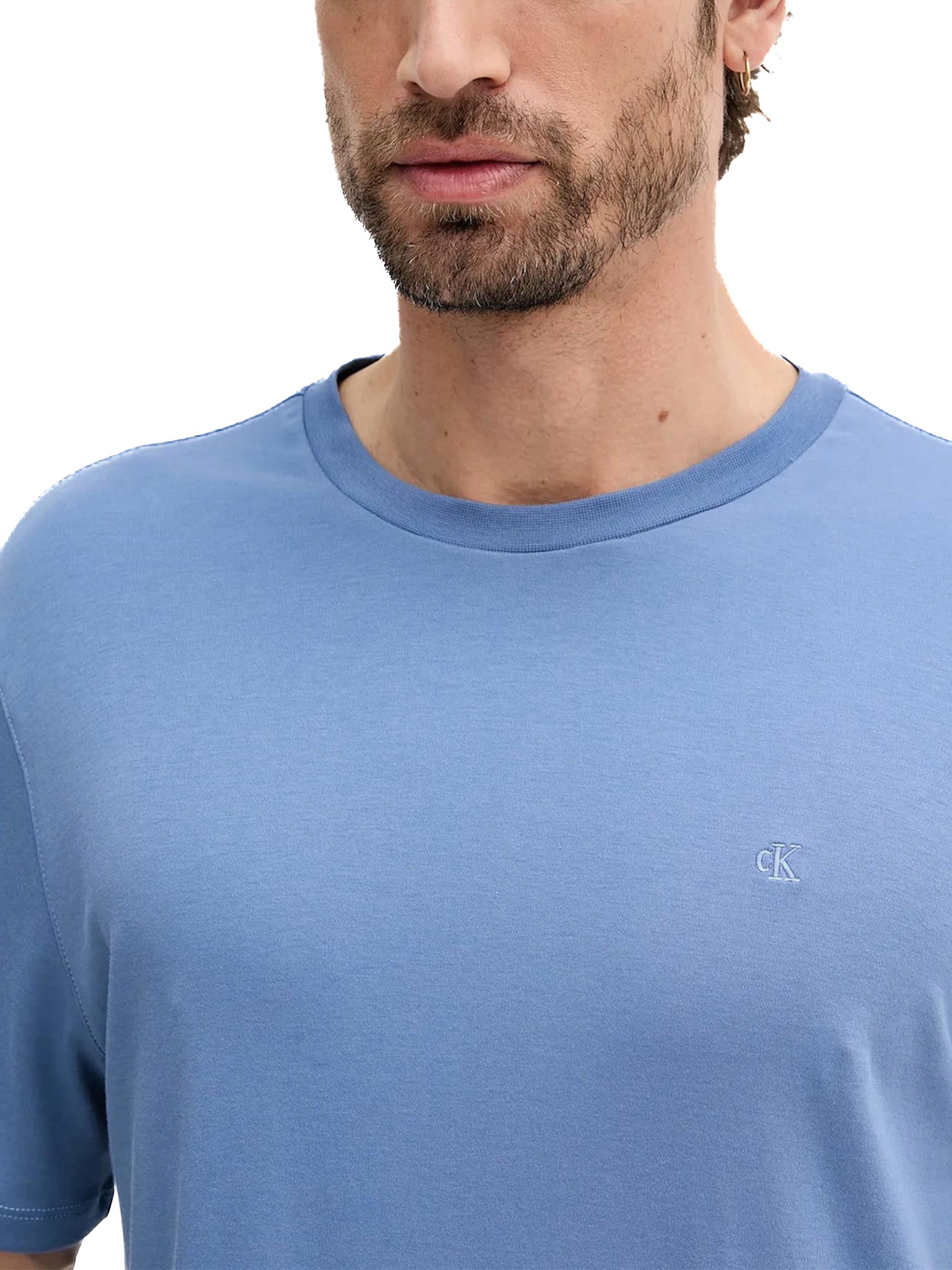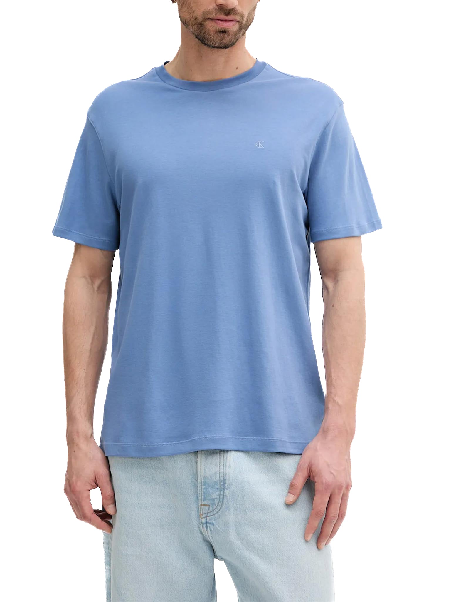 T-shirt Calvin Klein logo chest embro in cotone azzurro
