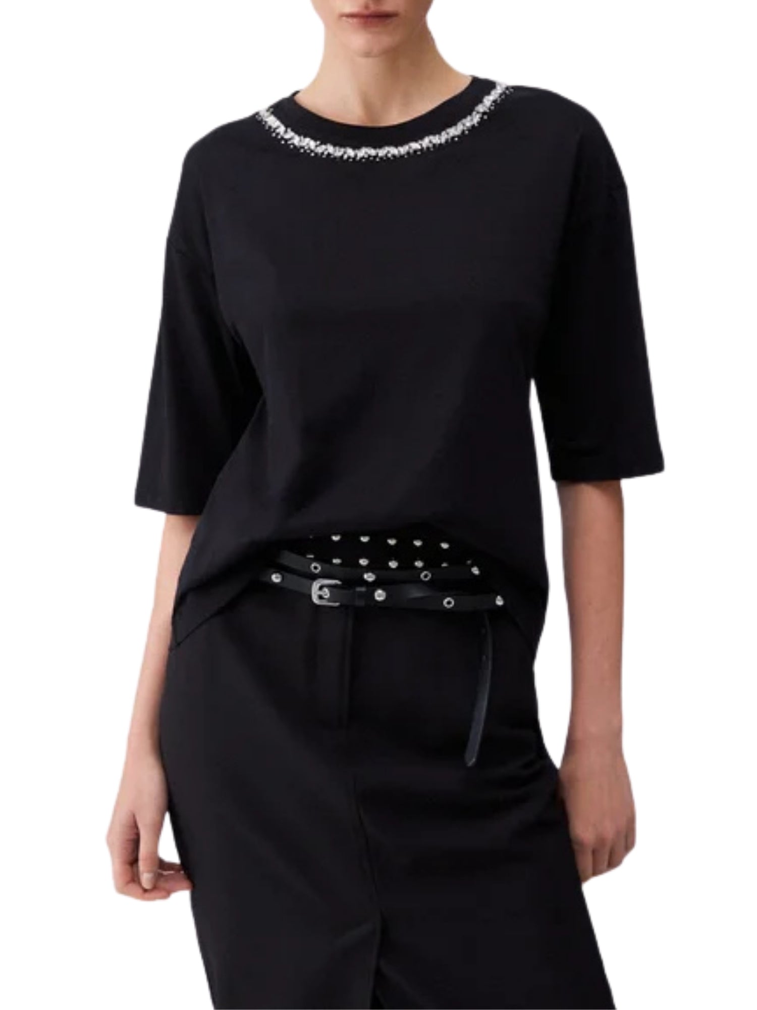 T-shirt Liu Jo donna manica corta modello Collar Motif nero