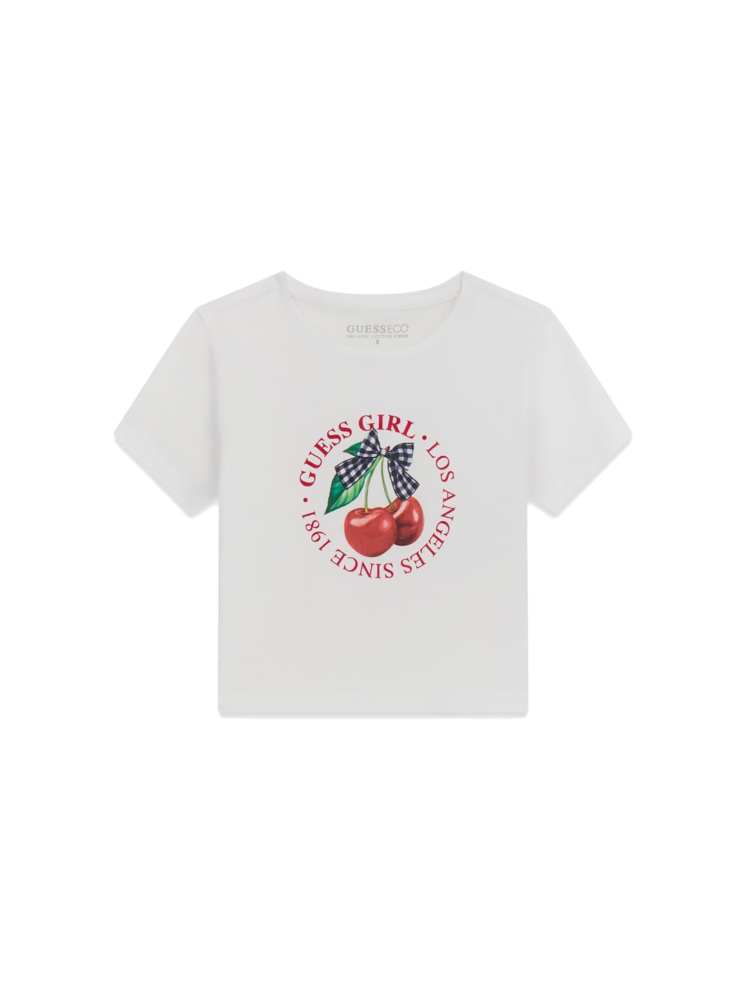 T-shirt Guess Bambina crop e stampa cherries bianco