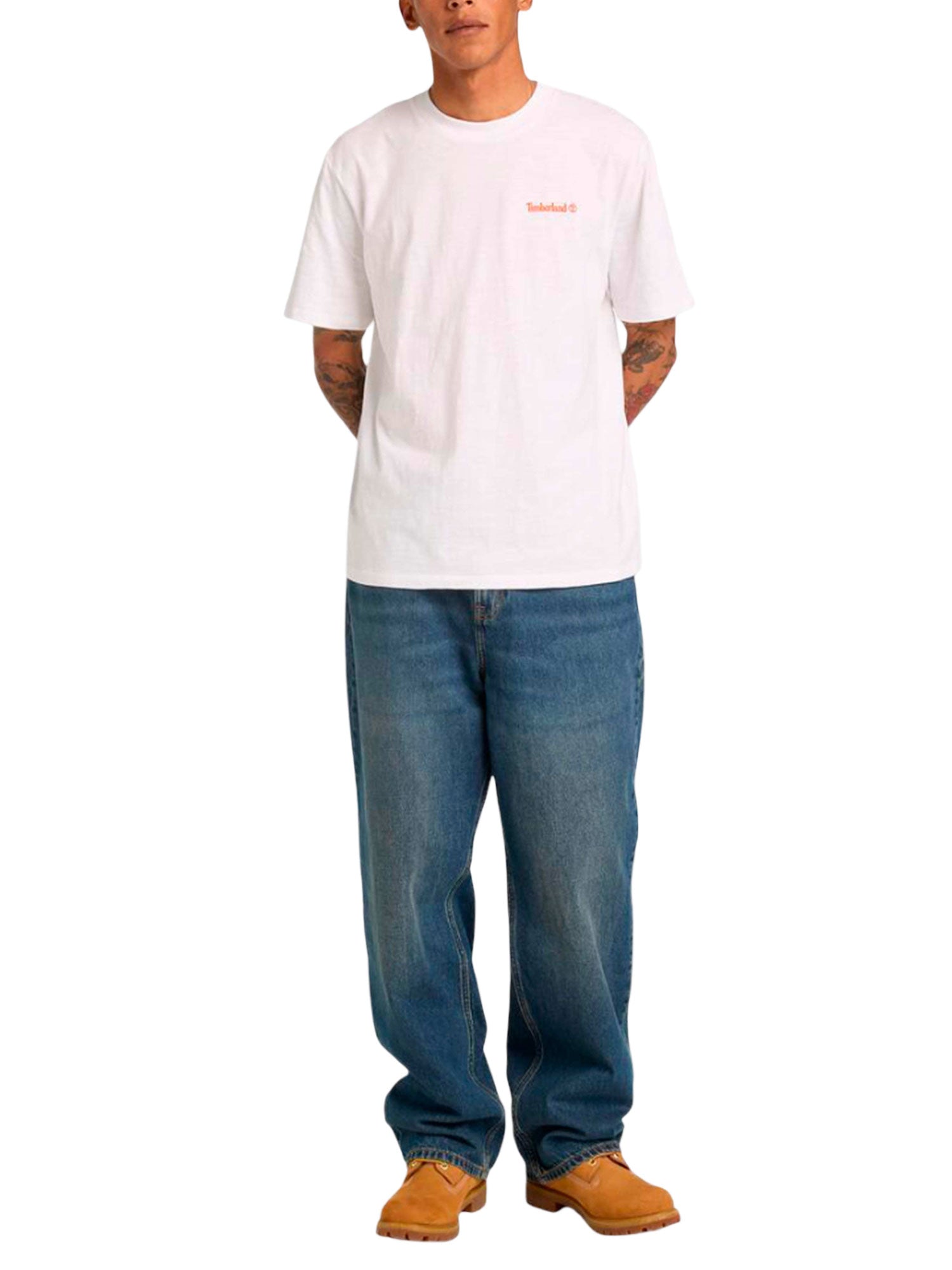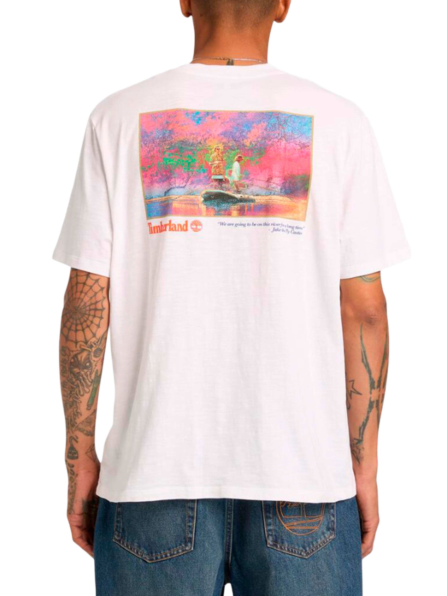 T-shirt Timberland uomo manica corta Fishing photo back bianco