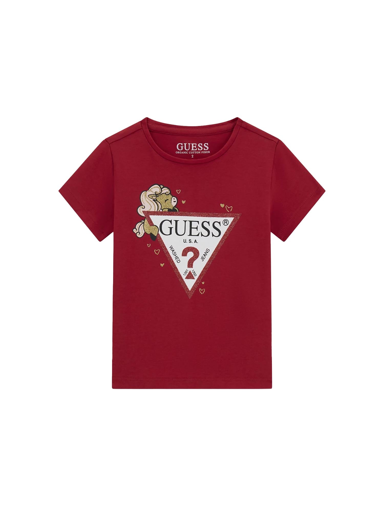 T-shirt Guess Bambina glitter logo rosso
