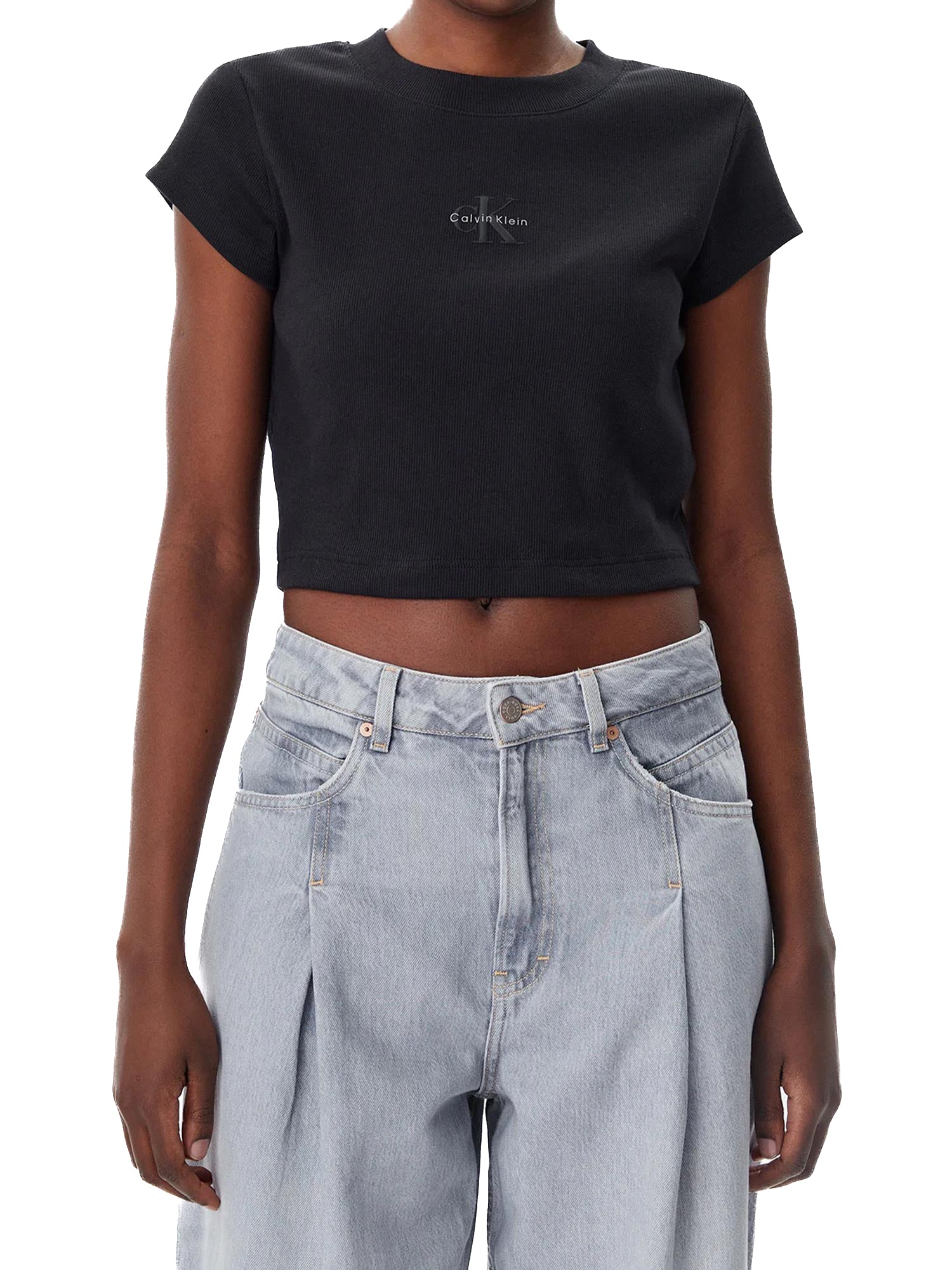T-shirt Calvin Klein cropped logo monogram baby nero