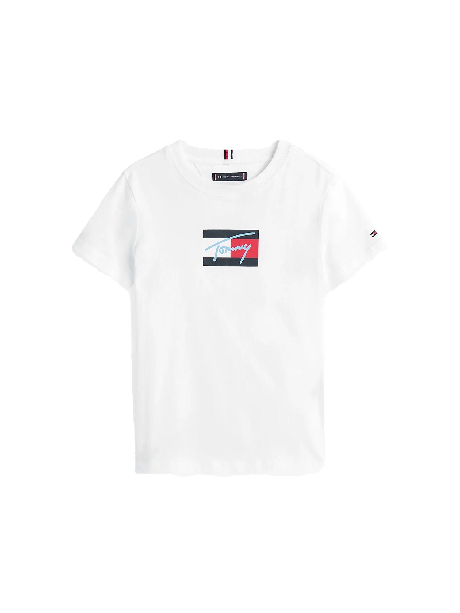 T-shirt manica corta Tommy Hilfiger ragazzo script flag stampa bianco