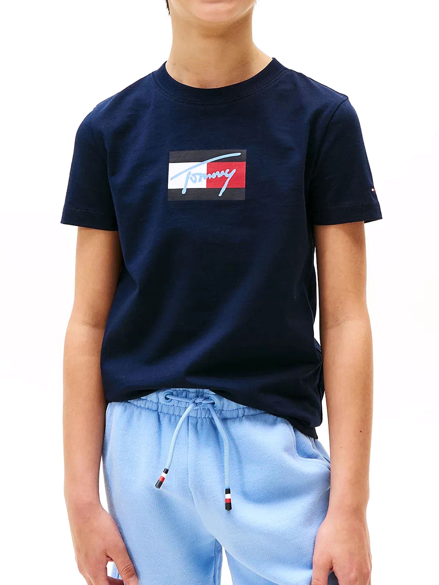 T-shirt manica corta Tommy Hilfiger bambino script flag stampa blu