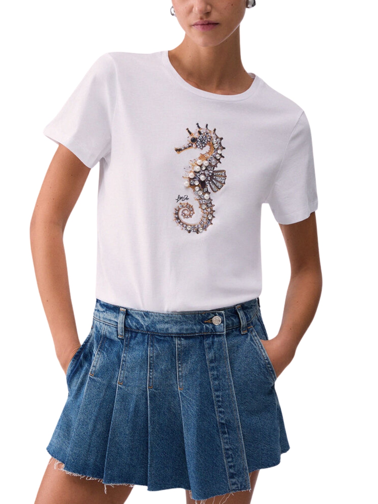 T-shirt Liu Jo donna manica corta modello Seahorse bianco/argento