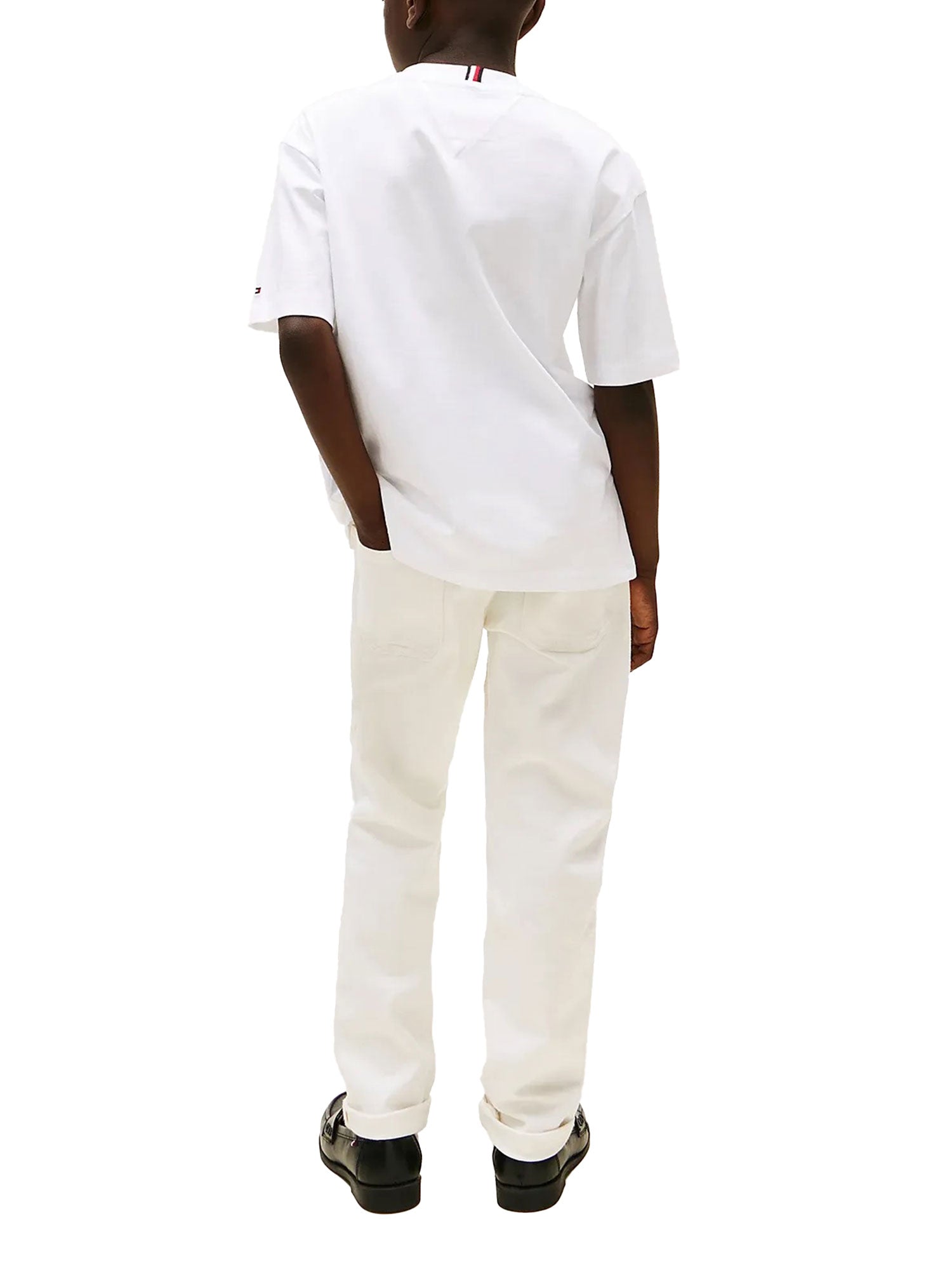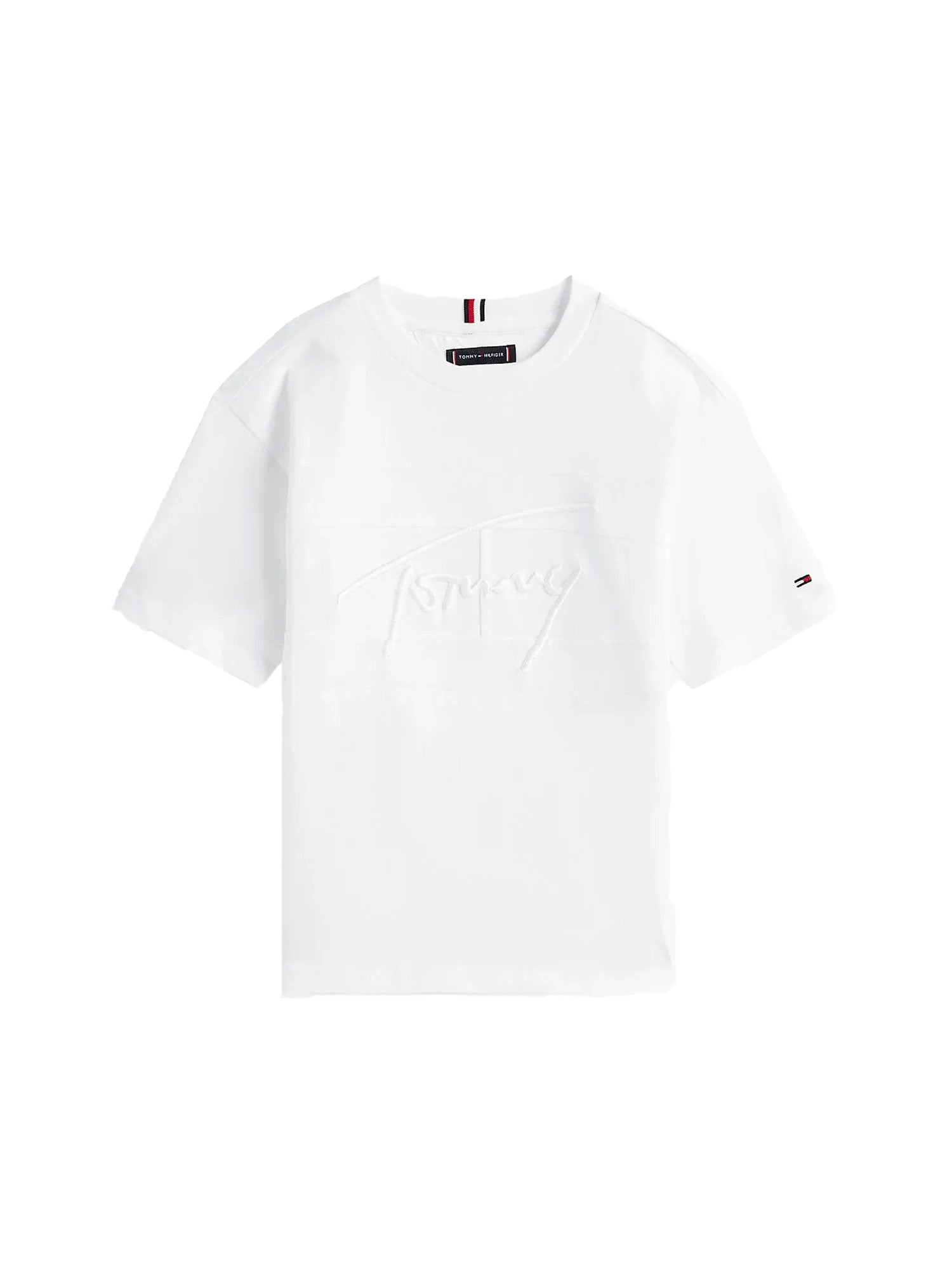 T-shirt manica corta Tommy Hilfiger bambino logo ricamato bianco