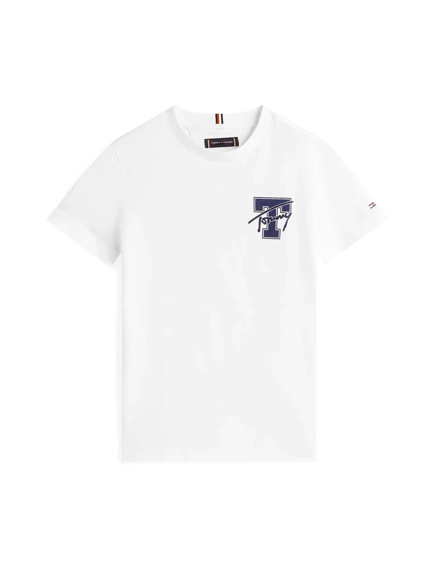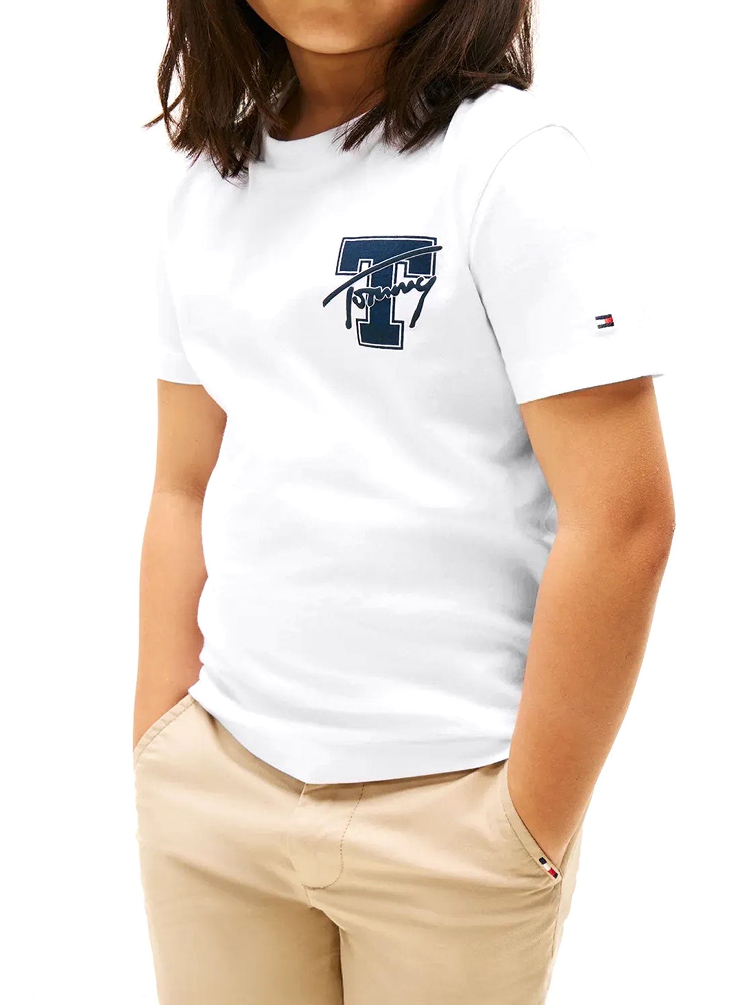T-shirt a manica corta Tommy Hilfiger da bambino dallo stile sportivo e contemporaneo, caratterizzata dalla grafica varsity con lettera “T” e firma Tommy sul petto, ideale per look casual dal carattere deciso.