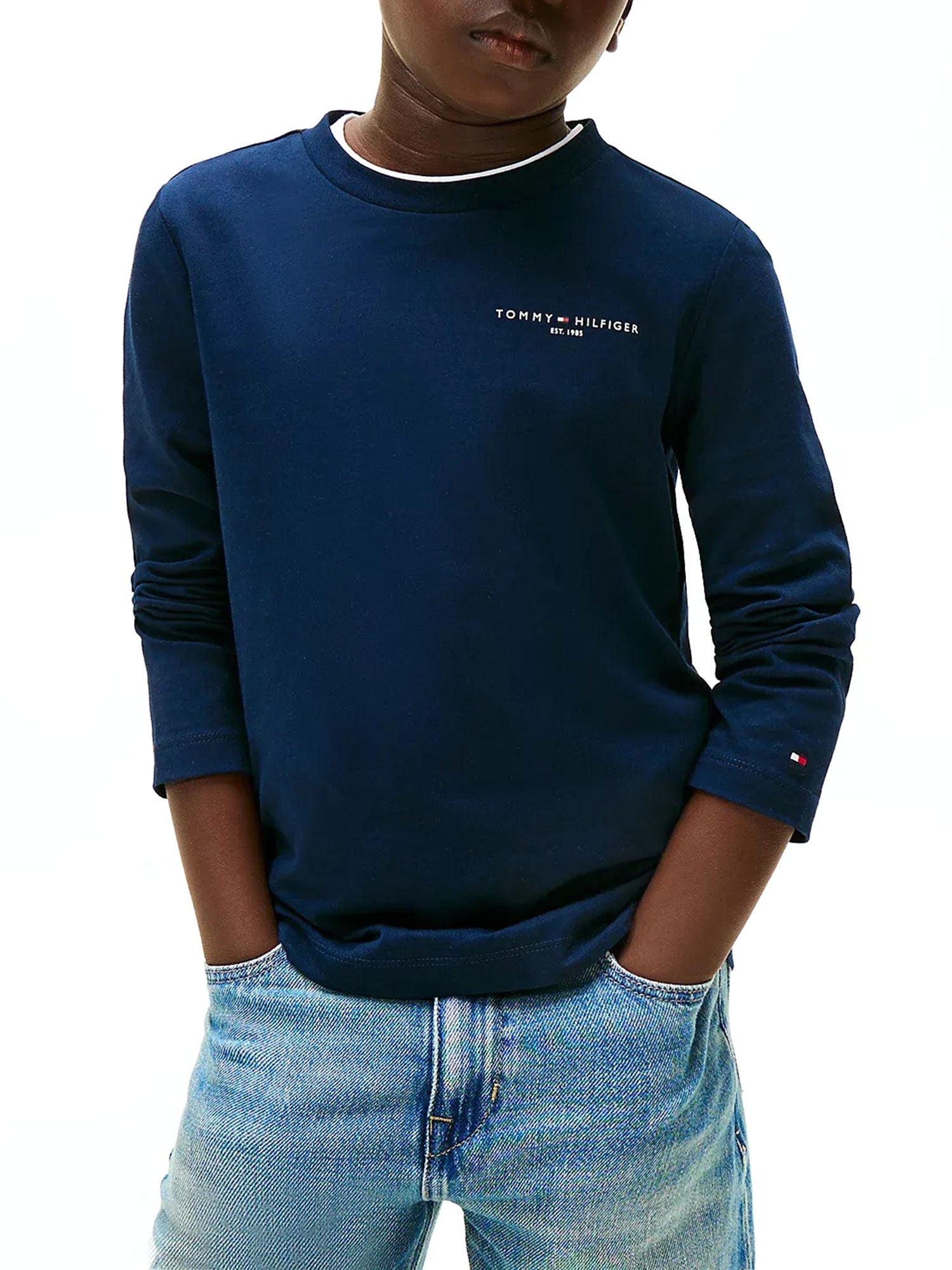 T-shirt manica lunga Tomy Hilfiger bambino mini logo corp blu