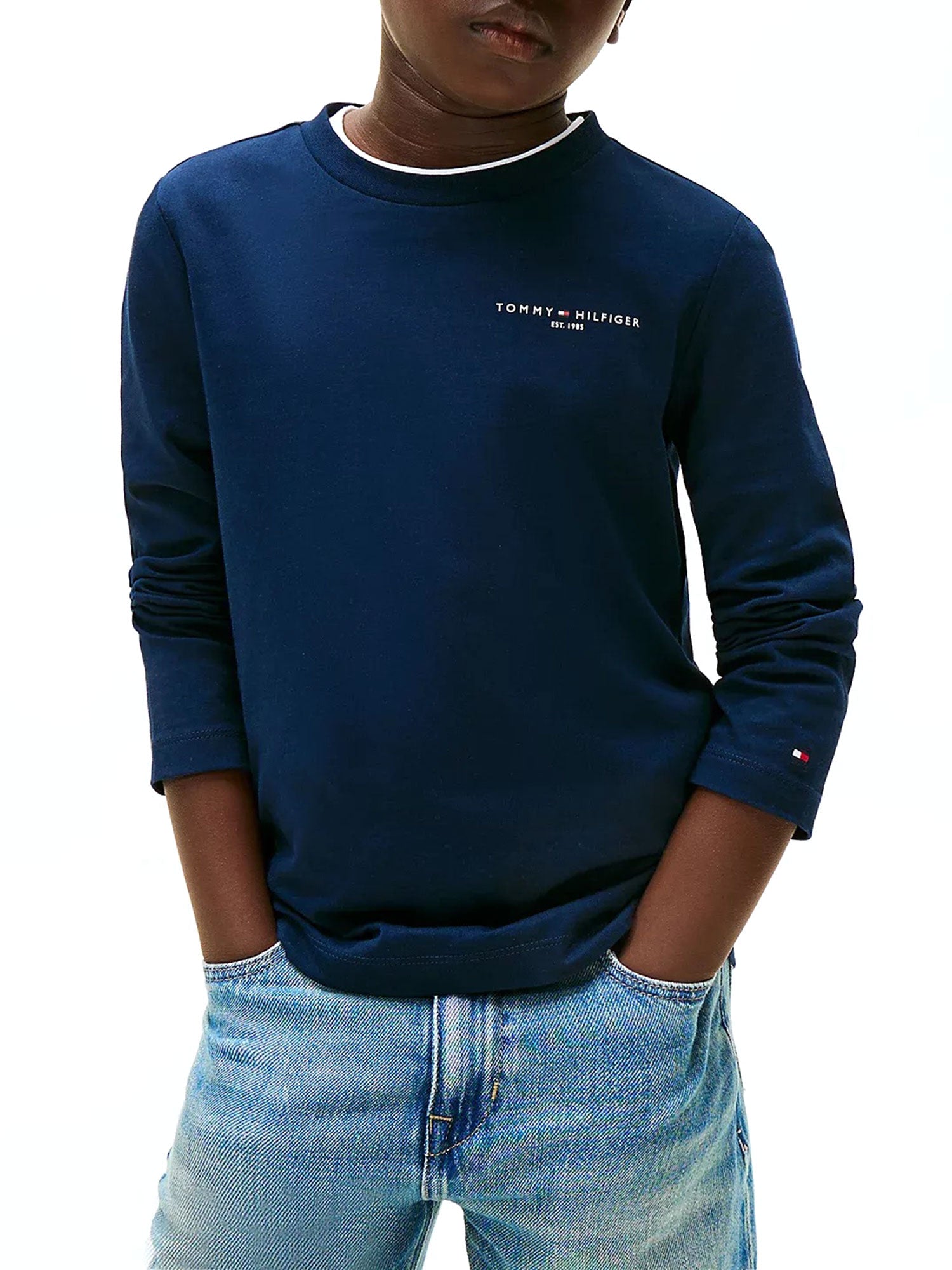 T-shirt manica lunga Tomy Hilfiger ragazzo mini logo corp blu