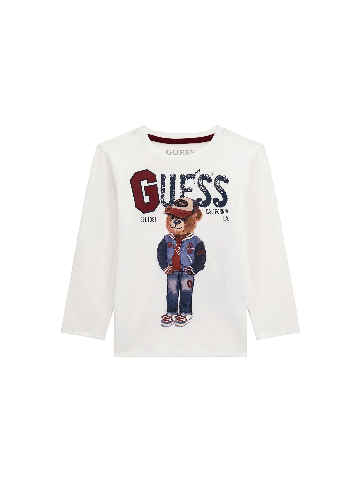 T-shirt manica lunga Guess bambino stampa teddy school bianco