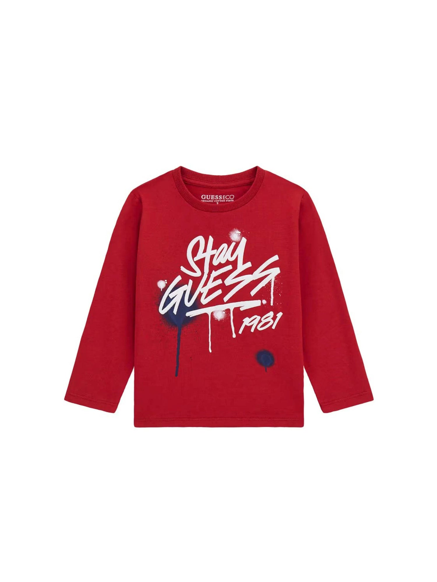 T-shirt manica lunga Guess bambino stampa stay rosso