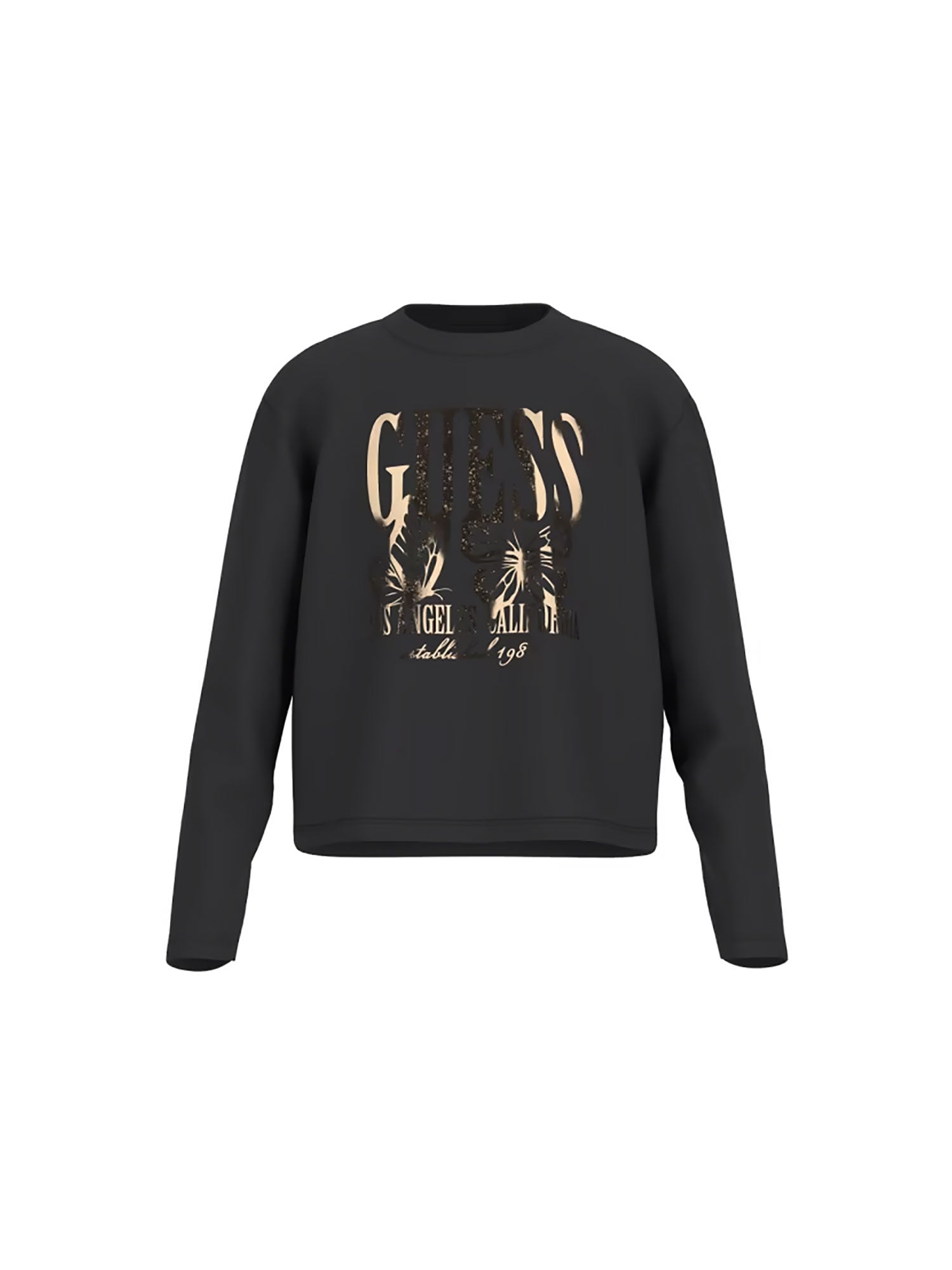 T-shirt Guess ragazza manica lunga stampa farfalle nero
