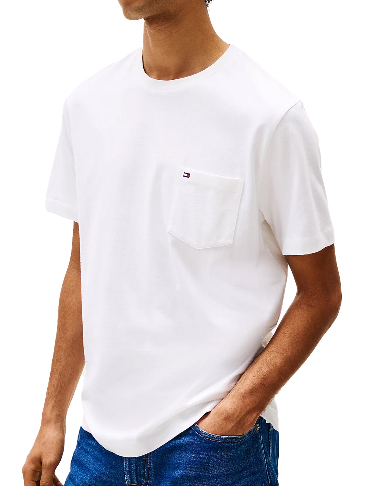 T-shirt Tommy Hilfigher in puro cotone, con tasca applicata sul petto che aggiunge un tocco ricercato rendendola un must-have per i tuoi look casual.