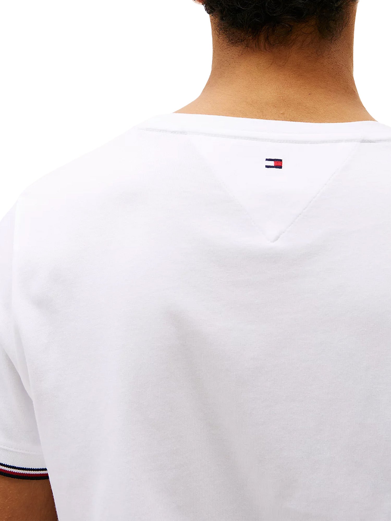 Aggiungi un tocco rétro ai tuoi outfit con questa classica T-shirt firmata Tommy Hilfigher, impreziosita dai bordi a contrasto sulle maniche e dall'iconico logo sul petto.