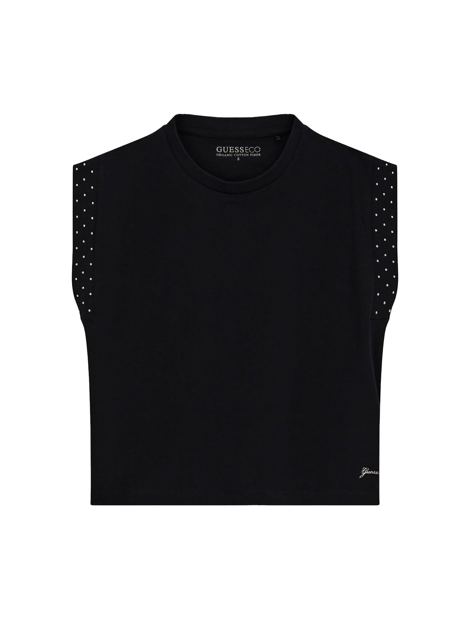 T-shirt Guess Ragazza smanicata in jersey di cotone nero