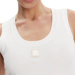 Essenziale e versatile, questa canotta Fracomina in costina è un capo must-have del guardaroba contemporaneo. Il design è valorizzato da uno scollo rotondo e dal logo FR in rilievo applicato sul petto, che dona un tocco distintivo e moderno. Perfetta da indossare da sola per un look casual chic o sotto blazer e giacche per uno stile più sofisticato.