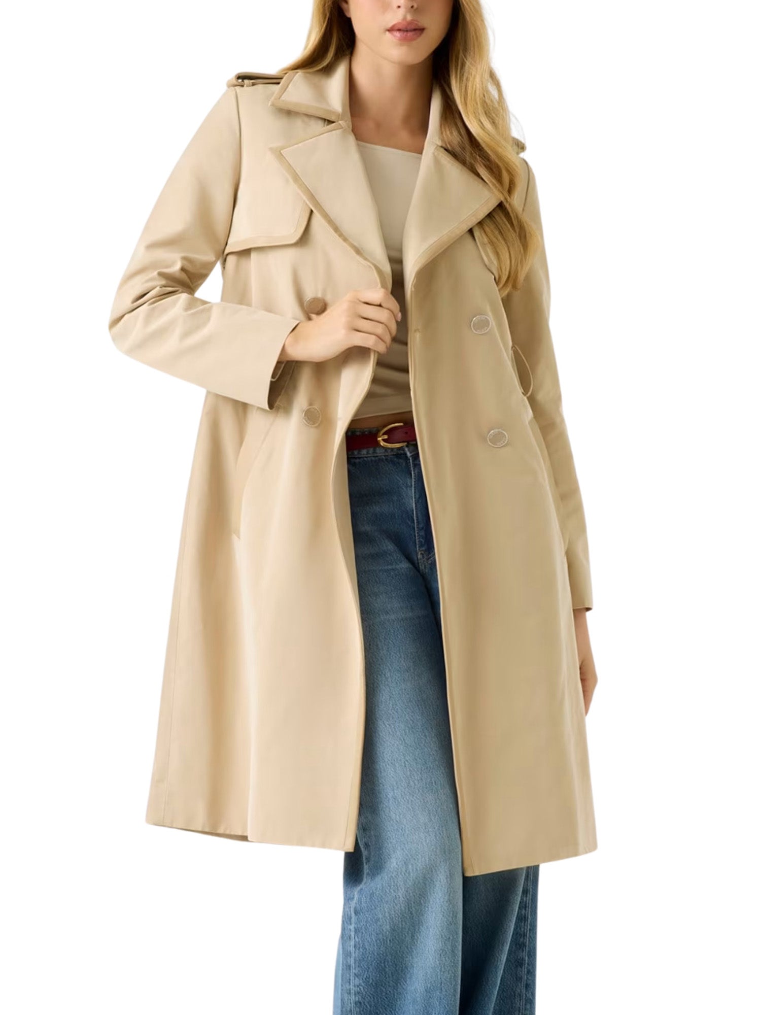 Trench in PU Guess donna modello Johnny con dettagli beige