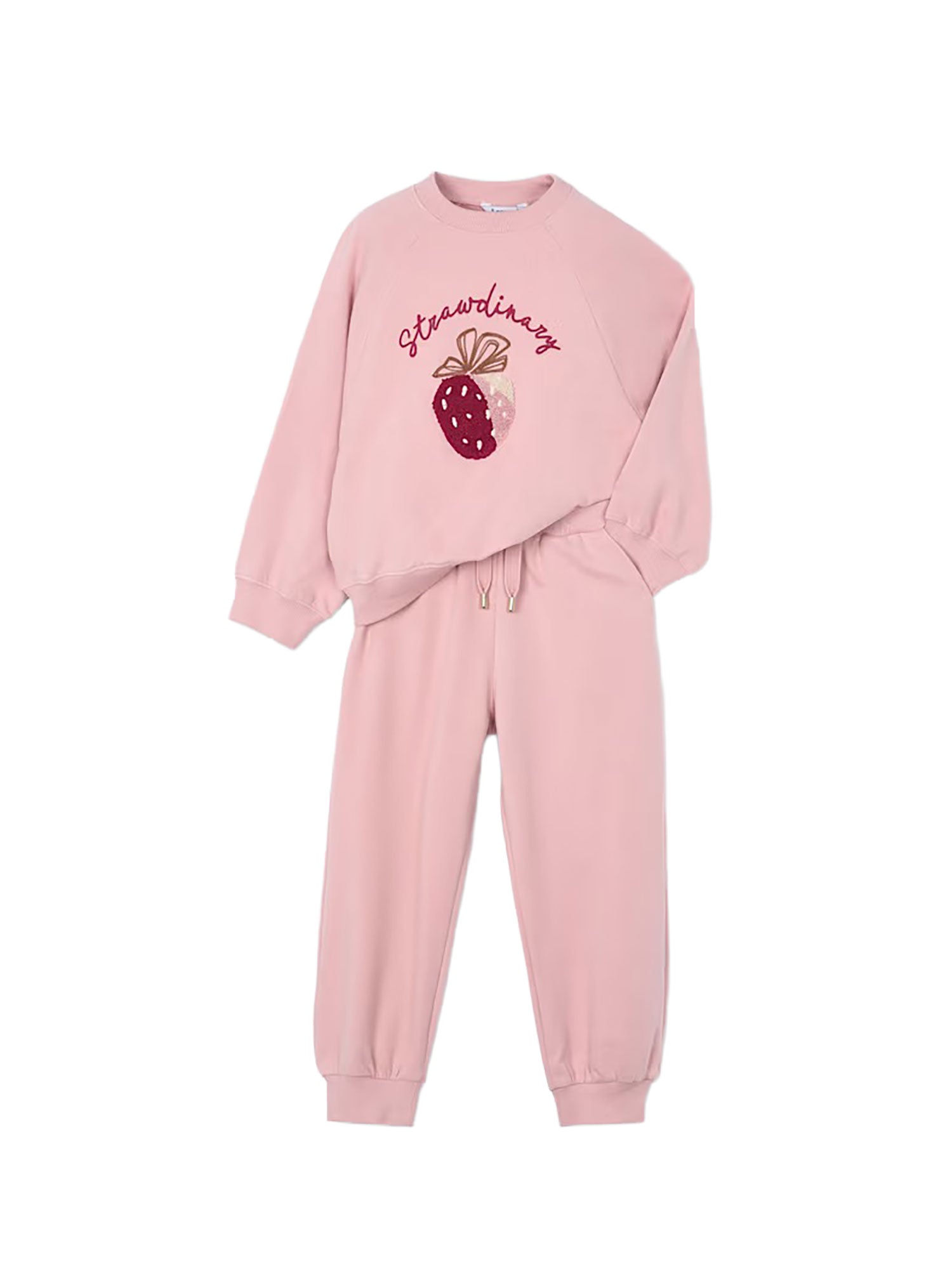 Tuta ricamo Mayoral bambina composta da una felpa con manica lunga e un pantalone coordinato. La felpa presenta polsini elasticizzati, un girocollo e un morbido tessuto di cotone elasticizzato che assicura comfort e resistenza.