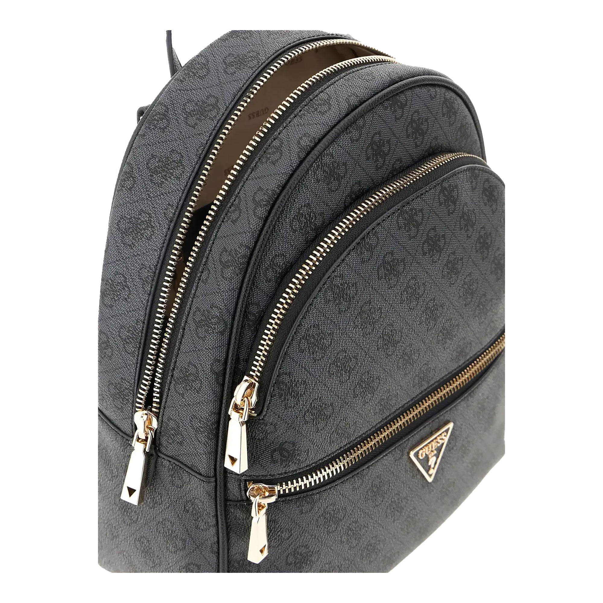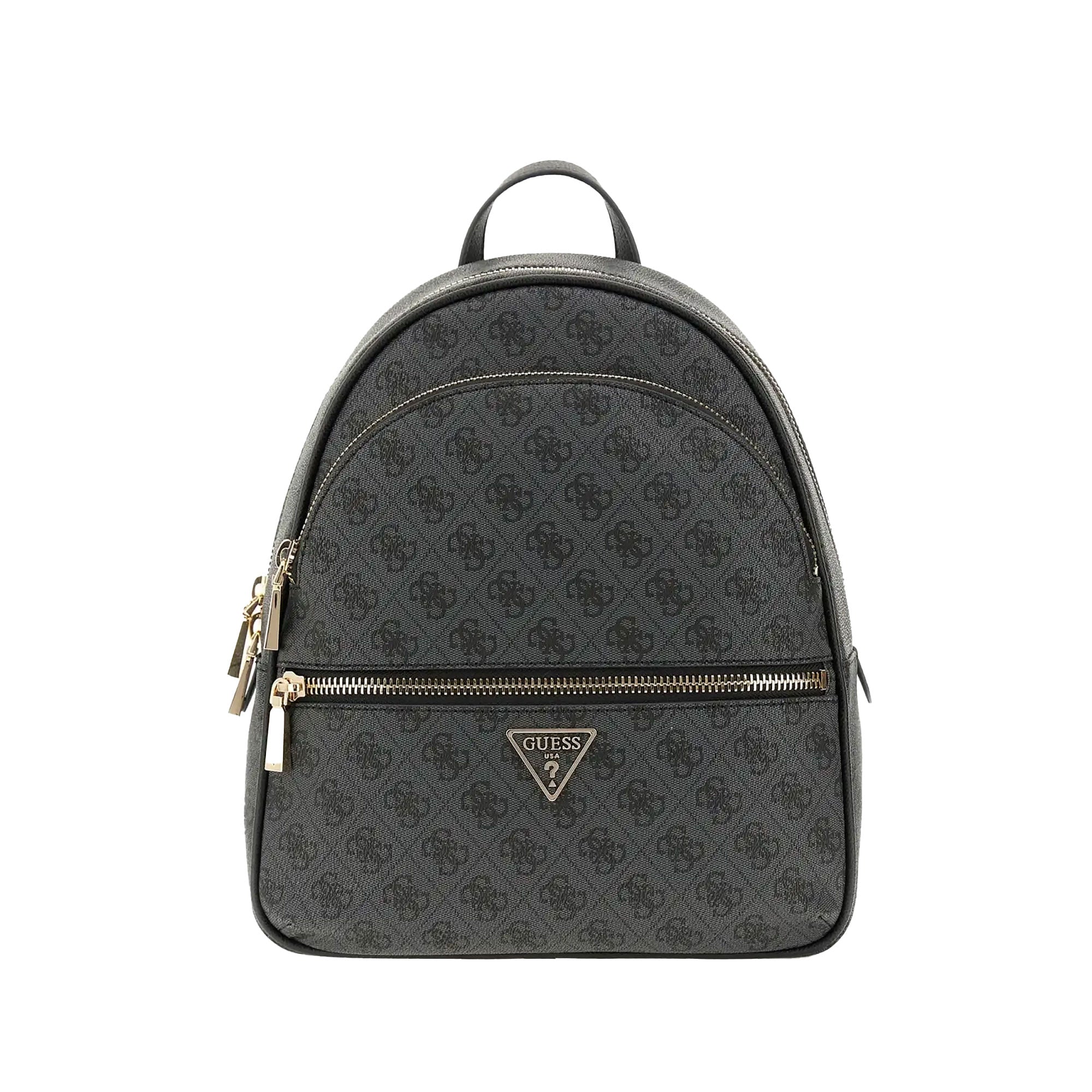 Zaino Guess dallo stile moderno e compatto, caratterizzato dall’iconico motivo 4G all-over in tonalità grigio antracite. Il design arrotondato e le finiture in metallo oro chiaro lo rendono un accessorio pratico e versatile per l’uso quotidiano.