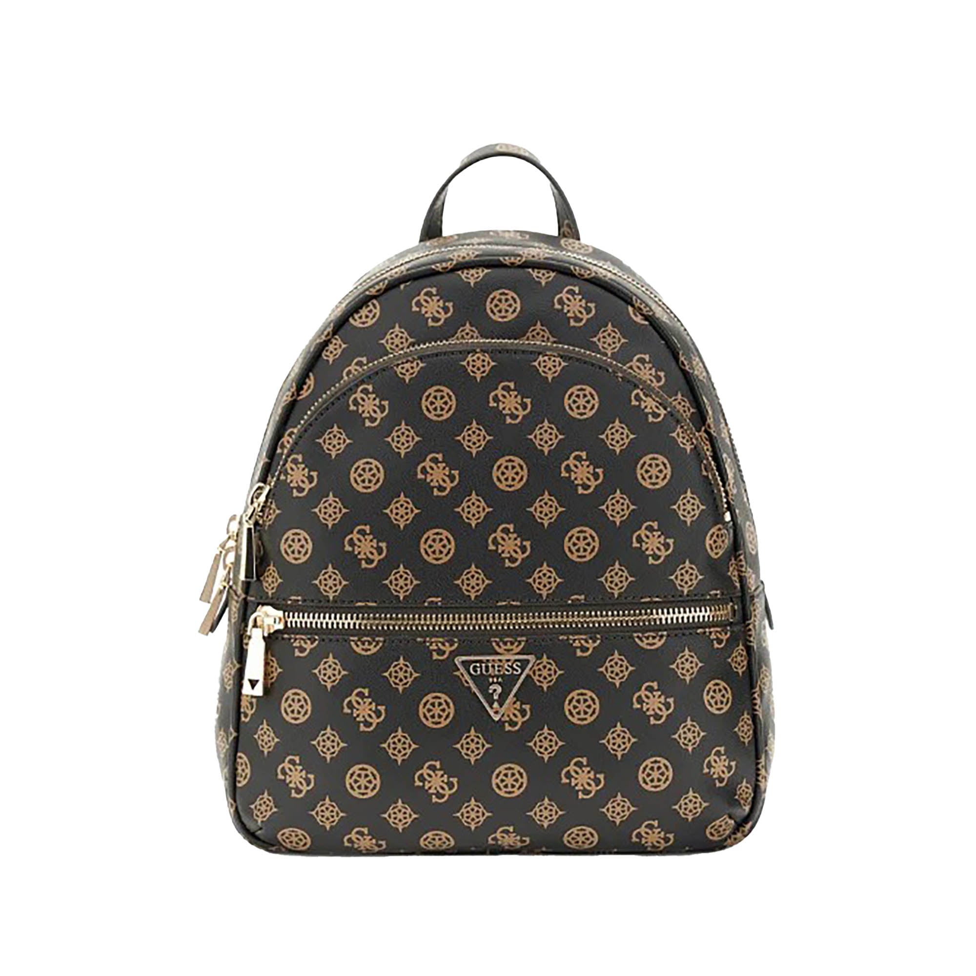 Zaino Guess dal design compatto e sportivo, realizzato in materiale sintetico con stampa 4G e righe verticali a contrasto sul davanti. Il modello presenta una pratica tasca frontale con zip, spallacci regolabili e manico superiore per un doppio modo di utilizzo. Perfetto per l’uso quotidiano.