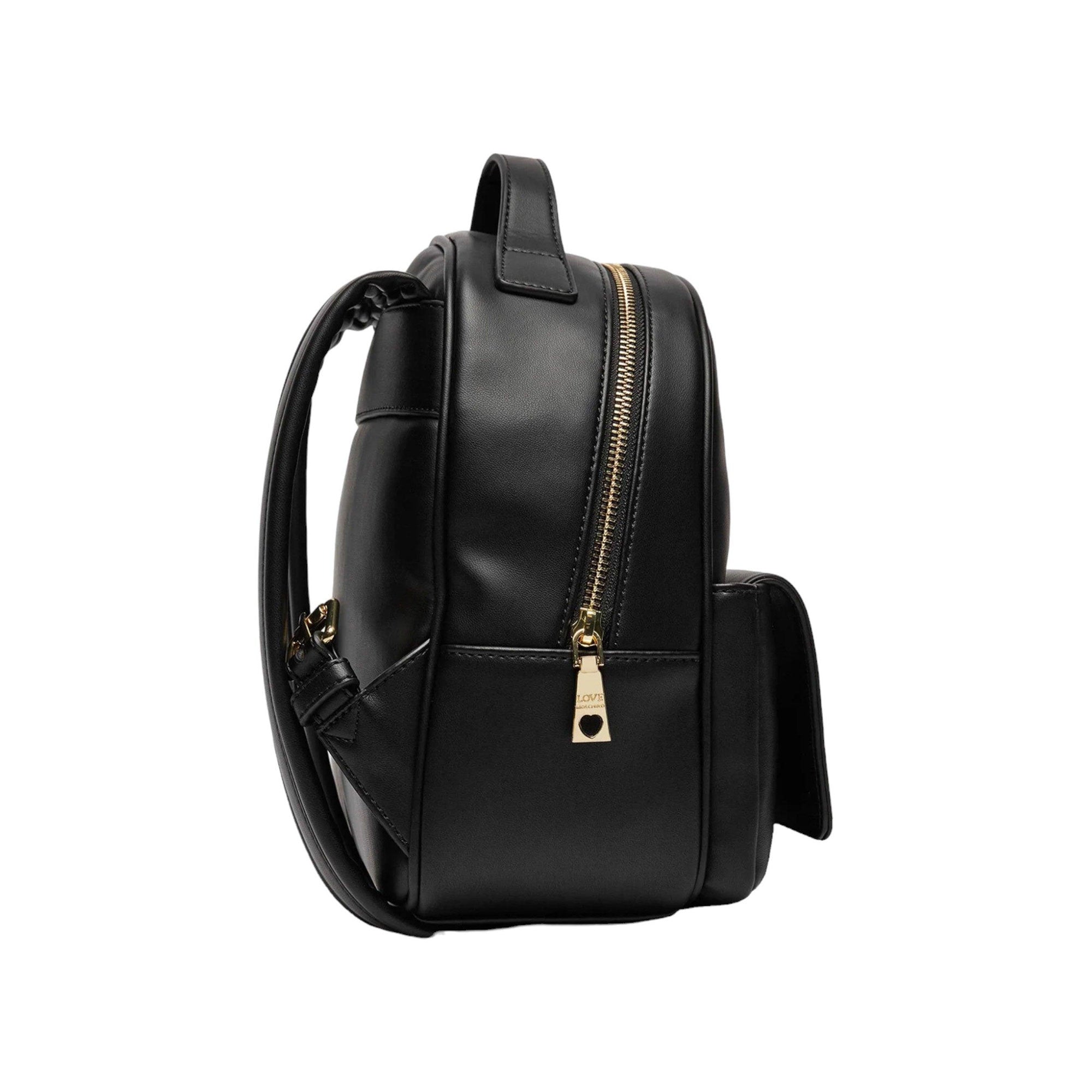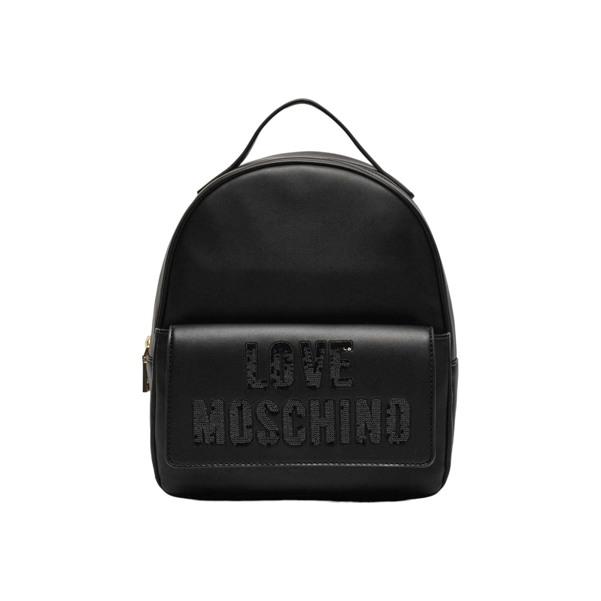 Zaino in ecopelle Love Moschino donna. Modello con logo lettering con paillettes.